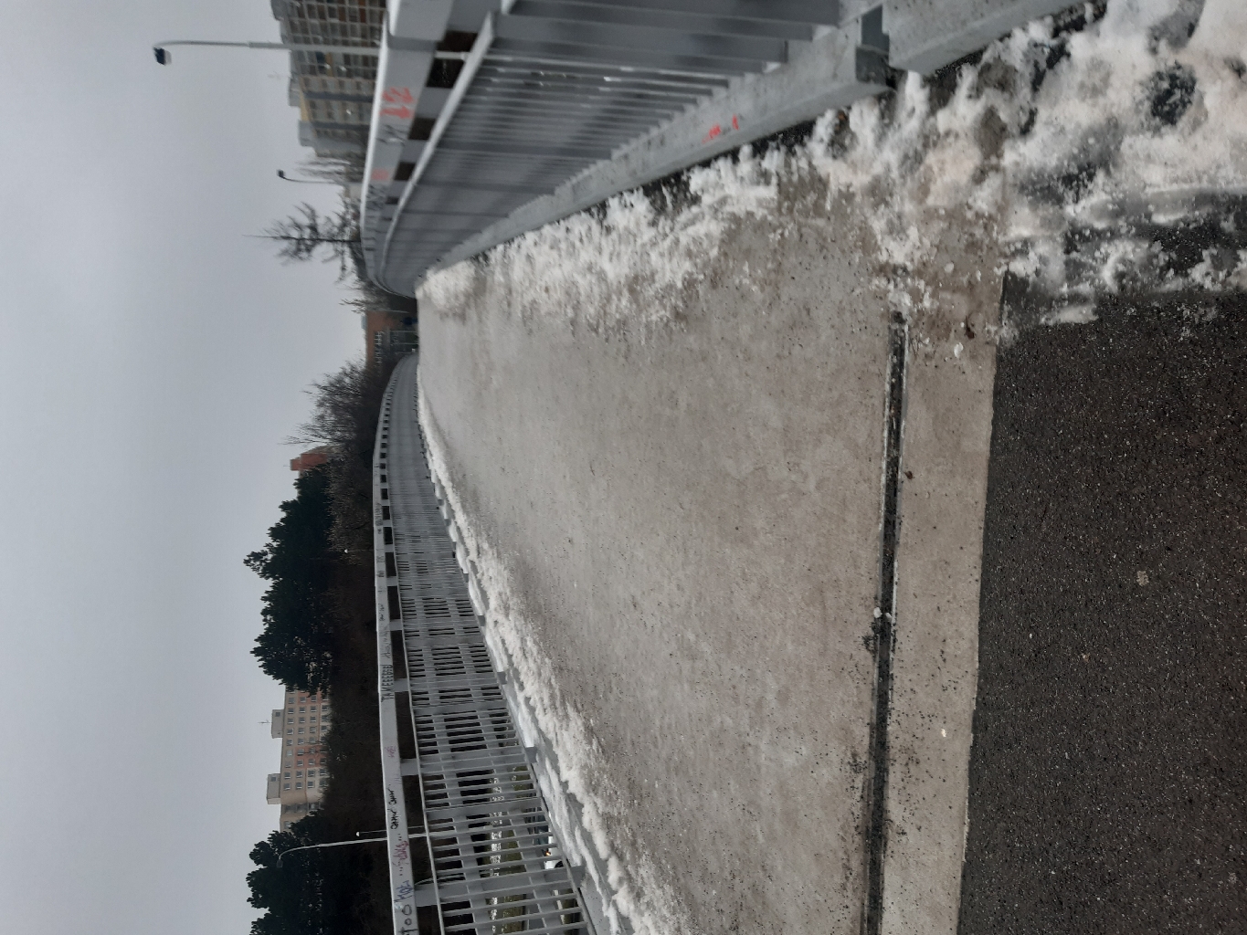 Most přes Jeremiášovu ulici mezi ulicemi Tlumačovská a Píškova nebezpečně klouže po celé šíři chodníku