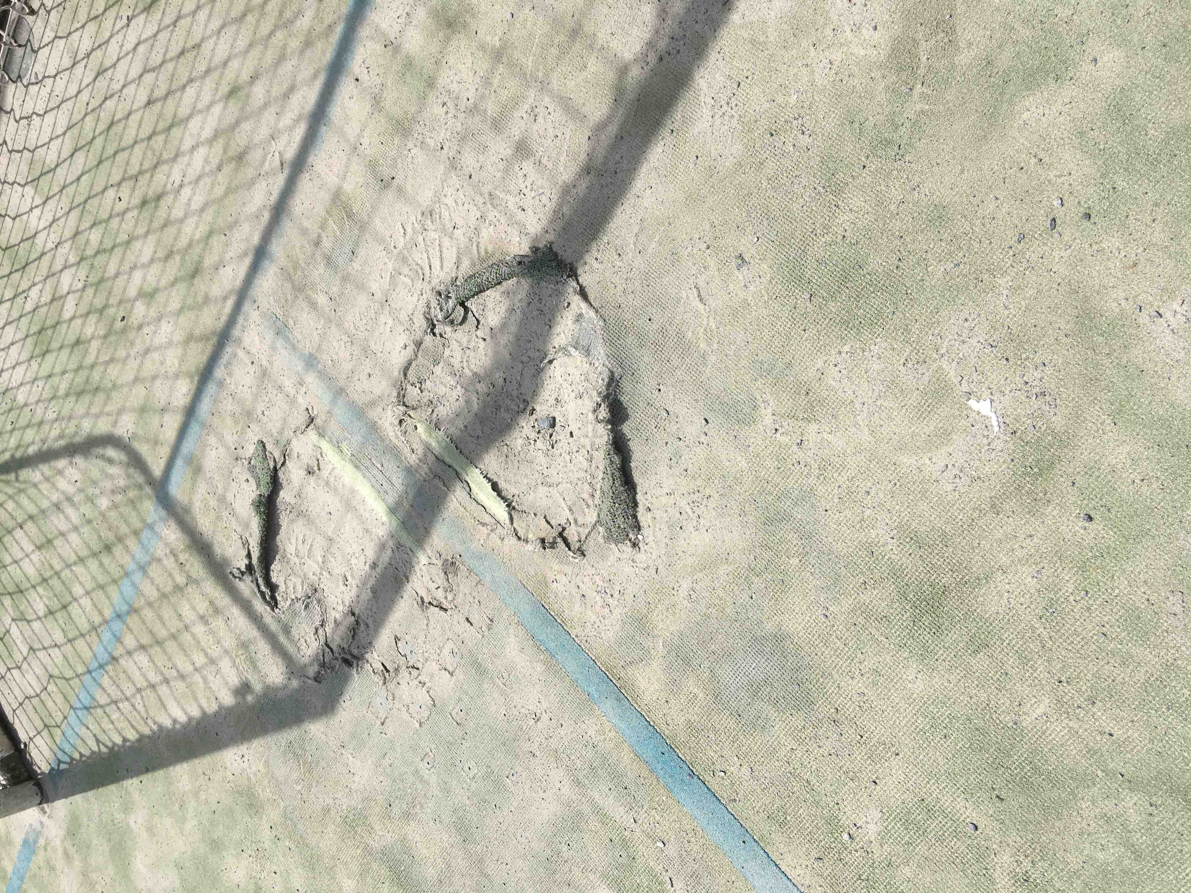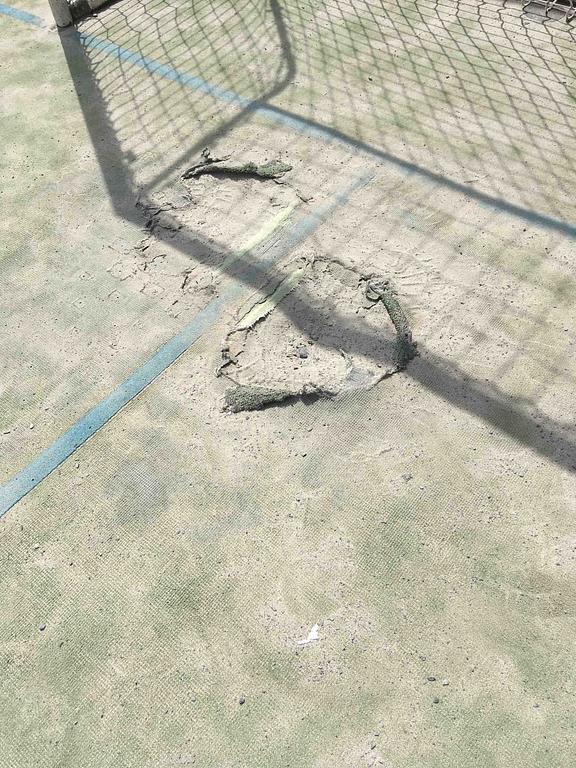 Na hřišti naproti kuzelkarne je zničeny povrch.