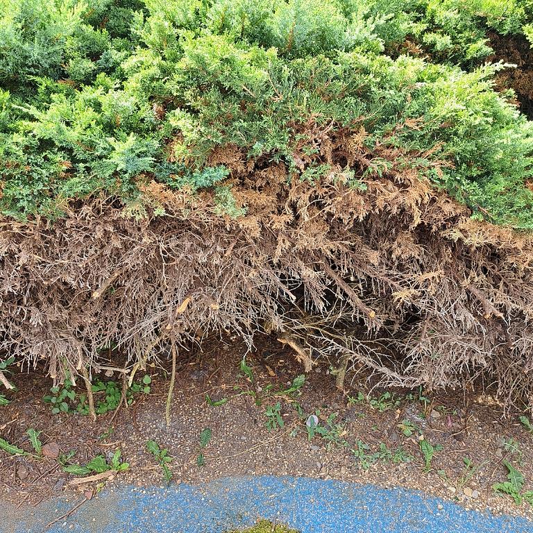 Dobry den,pred 2mesici jsem Vam psala o pudopok.jalovcich okolo hrist ve vnitrobloku Kettnerova.Drzi se zde odpadky a plno krys.Jsou nebezpecne pro deti, jelikoz z nich nejde vyndat zakopnuty balon.Vsude jsou tyto tuje prorezane nebo pokacene.Ja jen zadam sdstraneni spodnich mrtvych vetvi dle foto, aby se tuje staly pristupnejsi a dalo se tam uklizet a vyndat balo.Zadam prislibenou napravu! H.