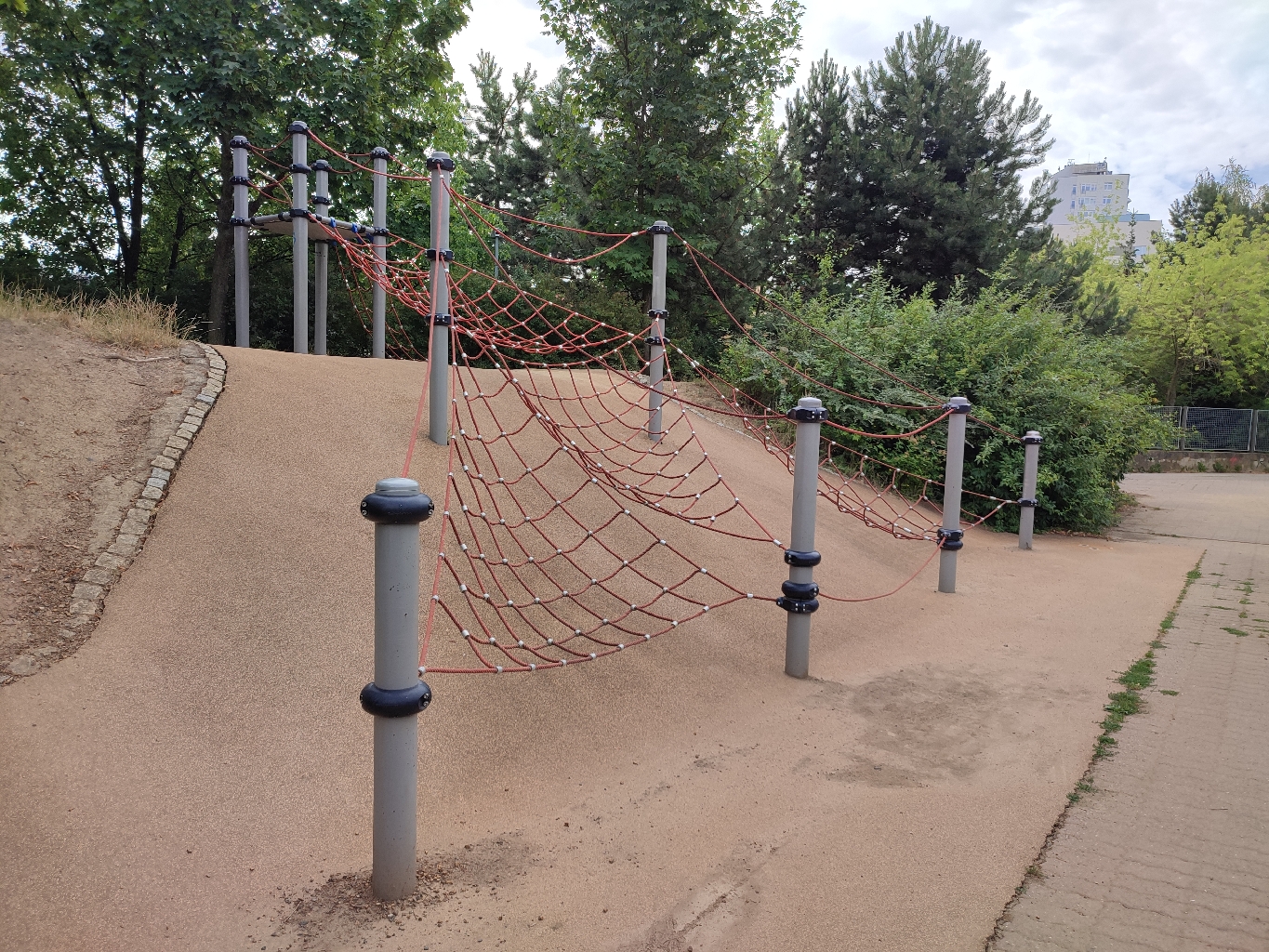 myslím, že by bylo vhodné cca do roka naplánovat výměnu desky v horní části lanové prolézačky ve vnitrobloku Běhounkova/Blattného u budovy Policie. Je již značně poškozená v místech uchycení.