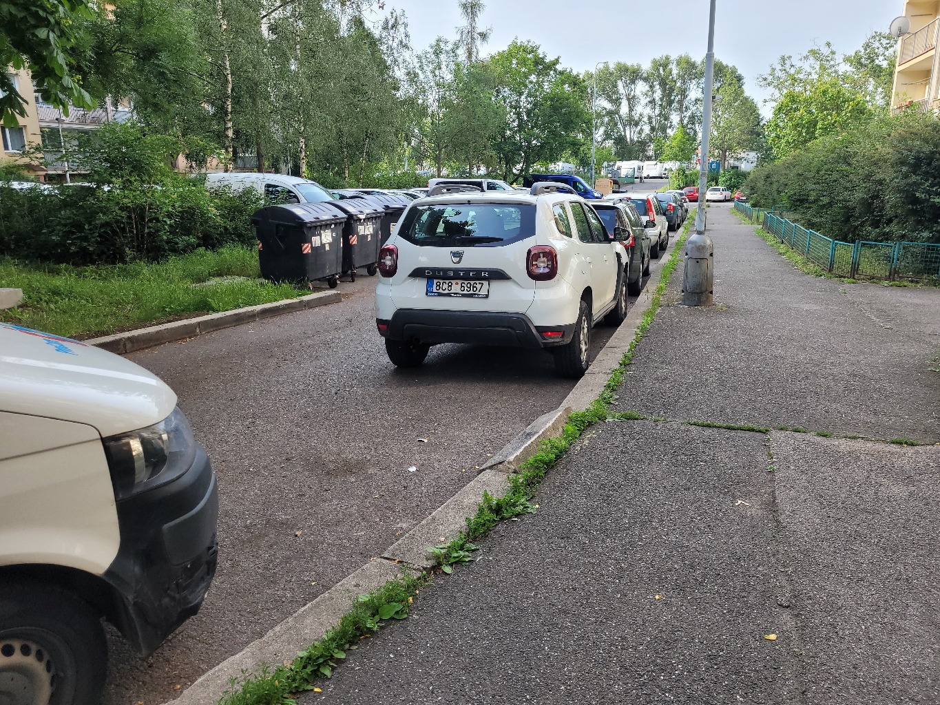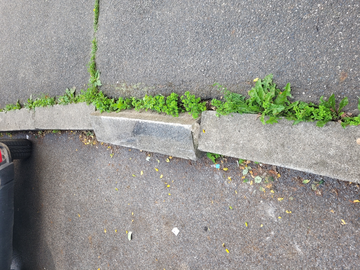 vyvrácený obrubník dopravní službou Billa