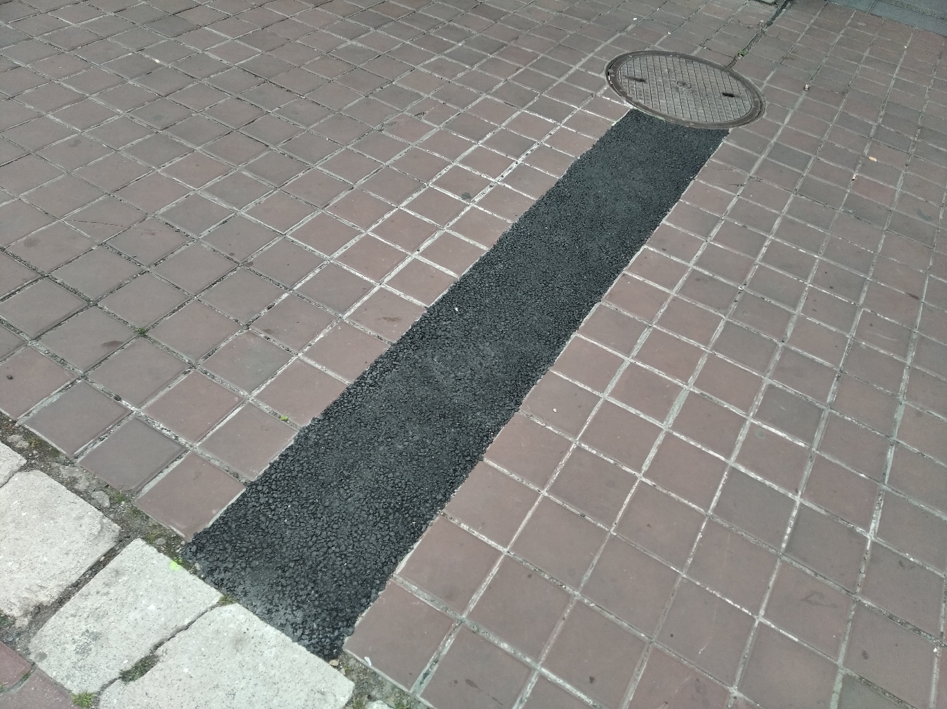 Dobrý den, na Lužinách před OC Lužiny se nejspíš muselo něco opravovat narychlo co se týče chodníku a po dokončení, kde byl růžový pěkný chodník, je asfalt. Fotil jsme skoro před týdnem.