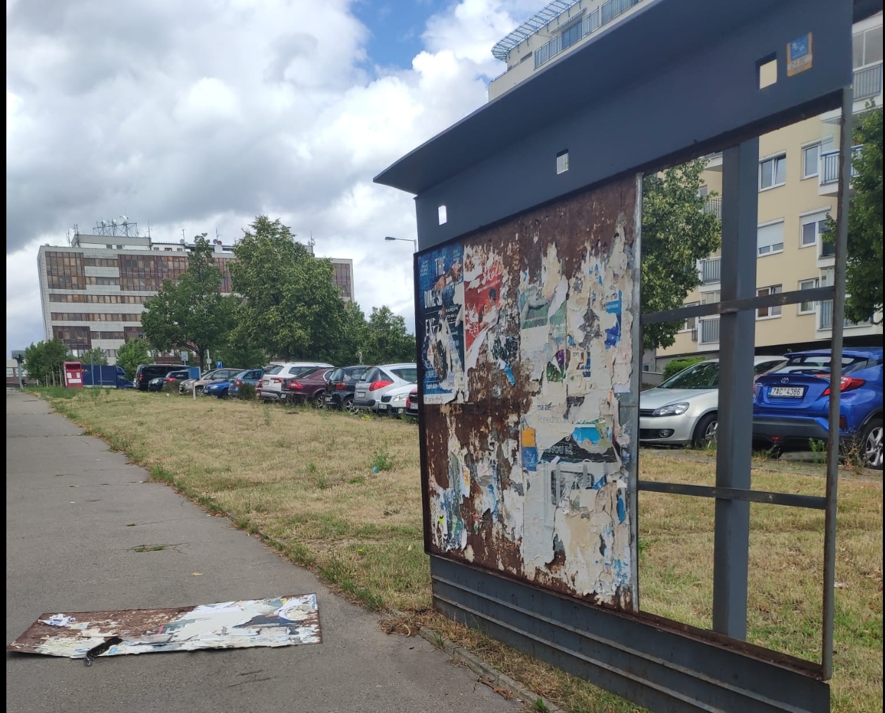 Dobrý den, v současné době evidujeme na plakátovací ploše technickou závadu v podobě uvolněných středových desek. Tato nám byla nahlášena minulý týden. Náš smluvní dodavatel provede opravu/výměnu poškozených částí plakátovací plochy v tomto kalendářním týdnu.