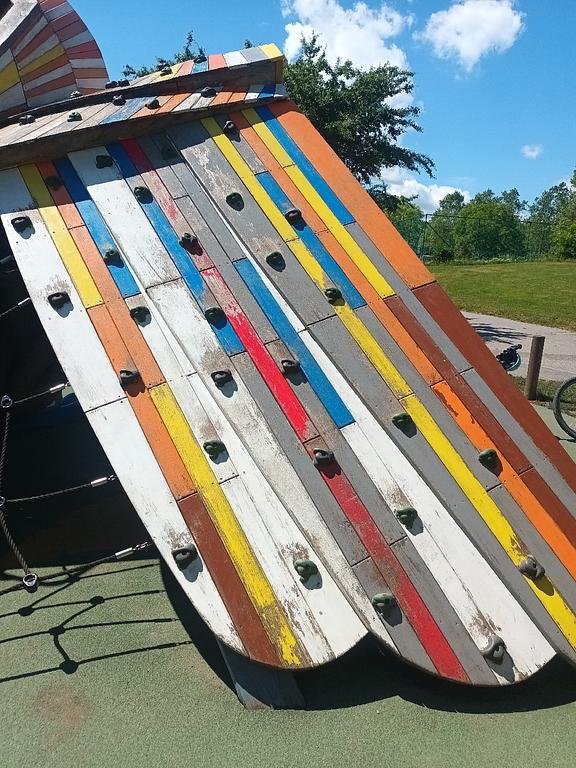 několik úchytů na lezecké stěné Sovička je uvolněných