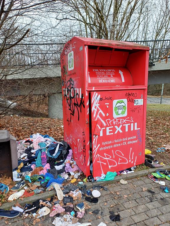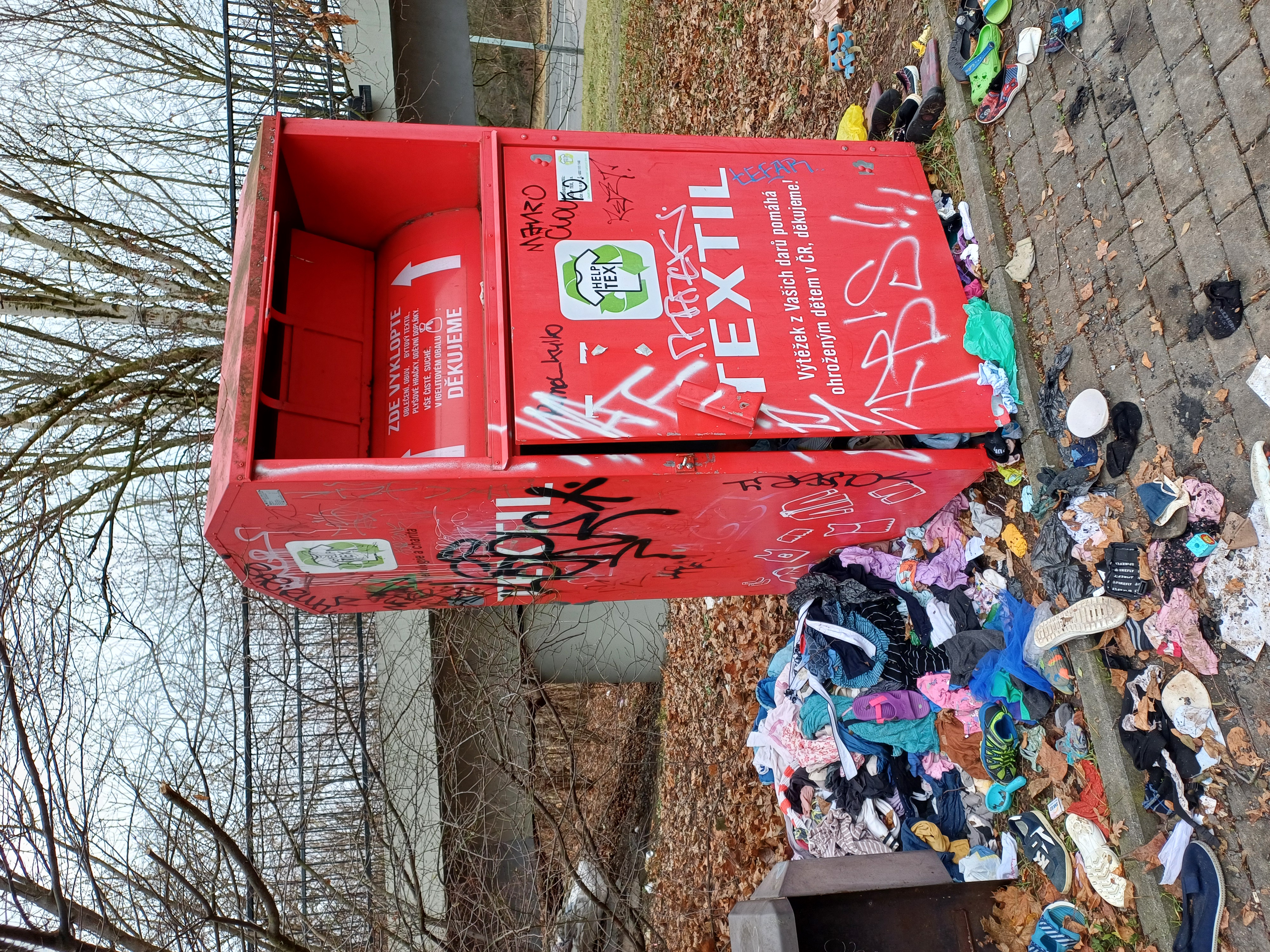 Dobrý den, dovoluji si upozornit na kontejner na oblečení v ulici Kodymova 2, u točny autobusu a těsně u mostu směrem ke Kauflandu.