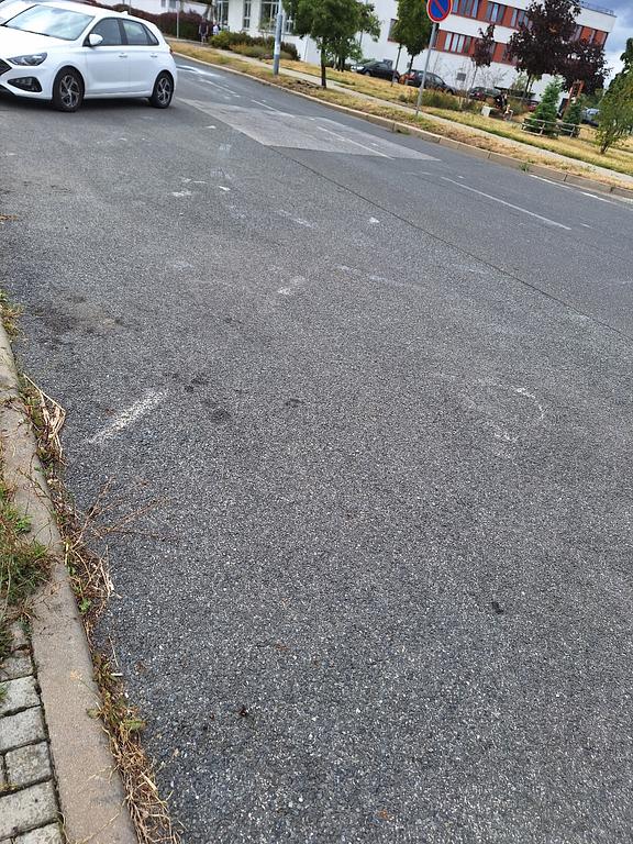 parkovací místa na Tlumačovská – nejsou vidět čáry