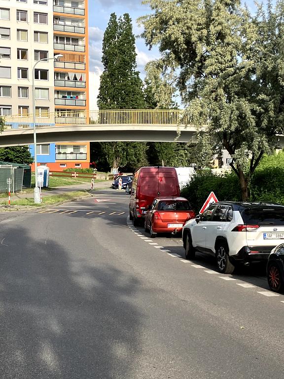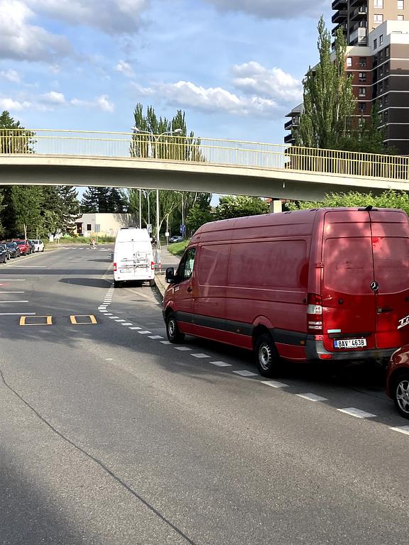 na nově vyznačném přechodu pro chodce jsou nevhodně umístěné dopravní značení které je umístěno mezi parkujicí vozidla. Ve směru jízdy z ulice Archeologická na Jeremiášovu řidiči nejsou nijak upozorněni na práci a přechod pro chodce, který je za zatáčkou. Pro chodce je velmi nebezpečné přejít silnici. Dále před přechodem se nesmí stát min. ve vzdálenosti 5m což bohužel není respektováno.