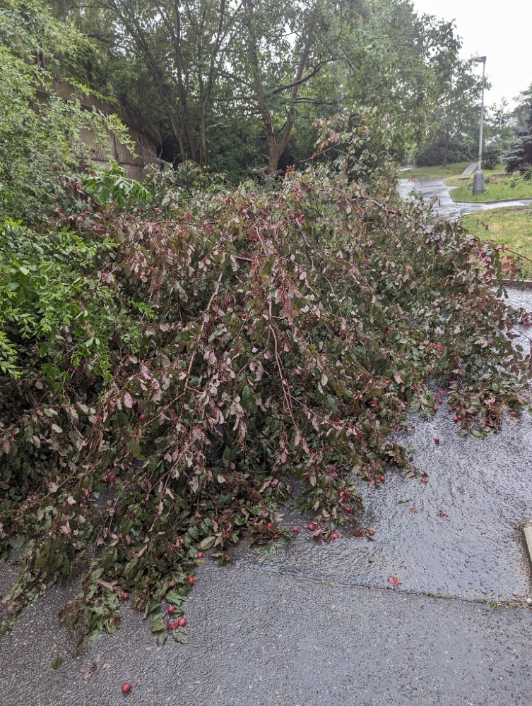 Dobrý den , ještě dnes jednou. V naší ulici se po dešti vyvrátil strom. Opět s ovocnými plody. Tak je asi potřeba odklidit.