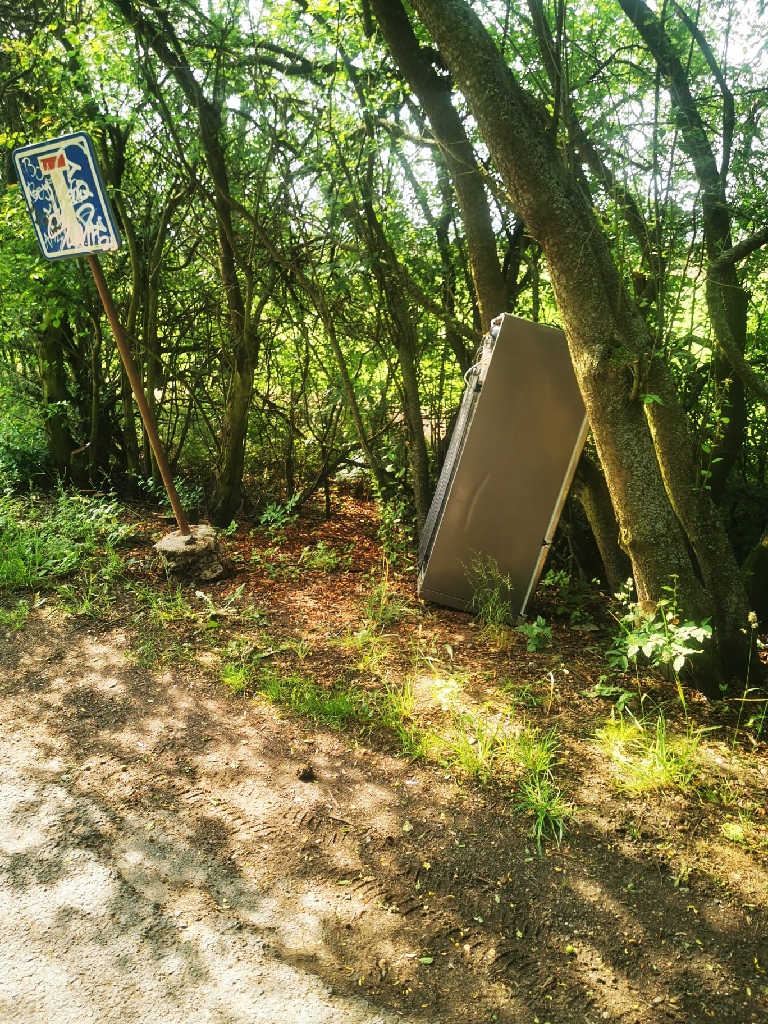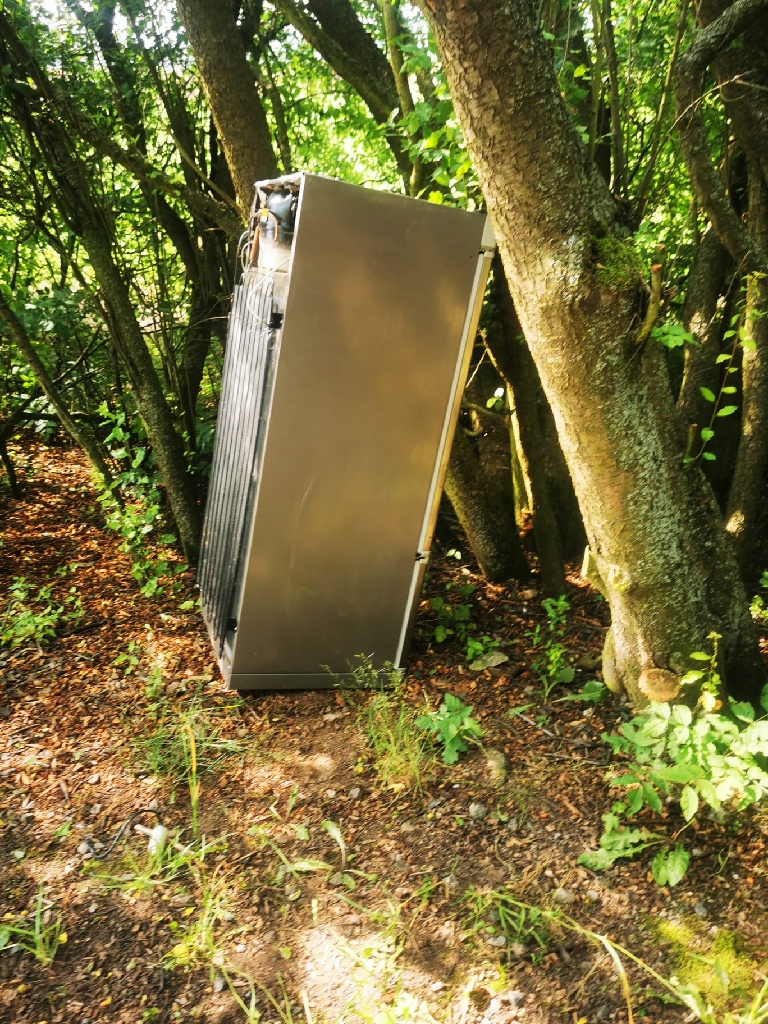 Vyhozena lednice s mrazakem u silnice smerem na Trebonice.