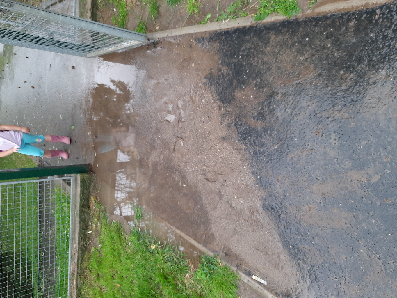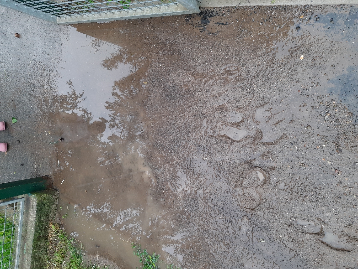 Po každém dešti se vytvoří v prostoru branky u vstupu do školky obrovská kaluž, která se těžko obchází. Všude okolo se naplaví bahno. Děkuji za nápravu,