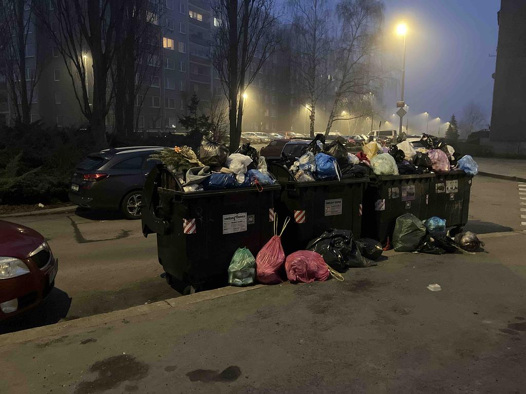 Přeplněné popelnice v ul. Borovanského x Kurzova