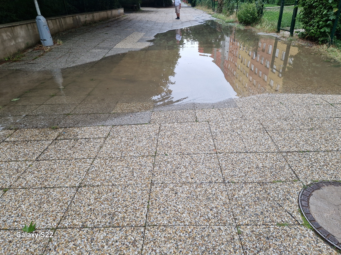 na ceste od metra Hurka, smerem k ulici Mezi školami v blizkosti gymnazia, se po kazdem desti tvori obrovska louze, ktera se neda prejit a lide jsou nuceni hledat náhradni cestu. kanal je neustale ucpany a vodu nepobira. prosim o napravu.