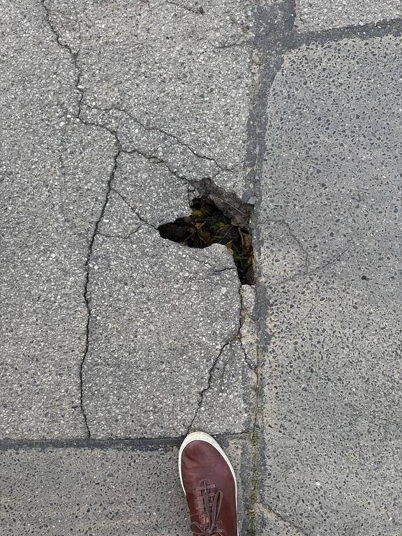 Díra vedle kanálu je hluboká asi 30cm a je i pod ještě nepropadlou silnicí