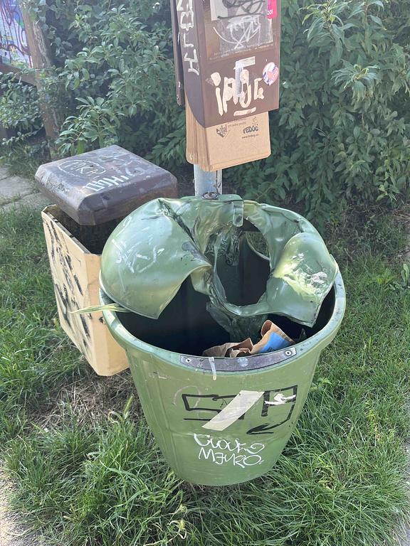 Zničené víko odpadkového koše