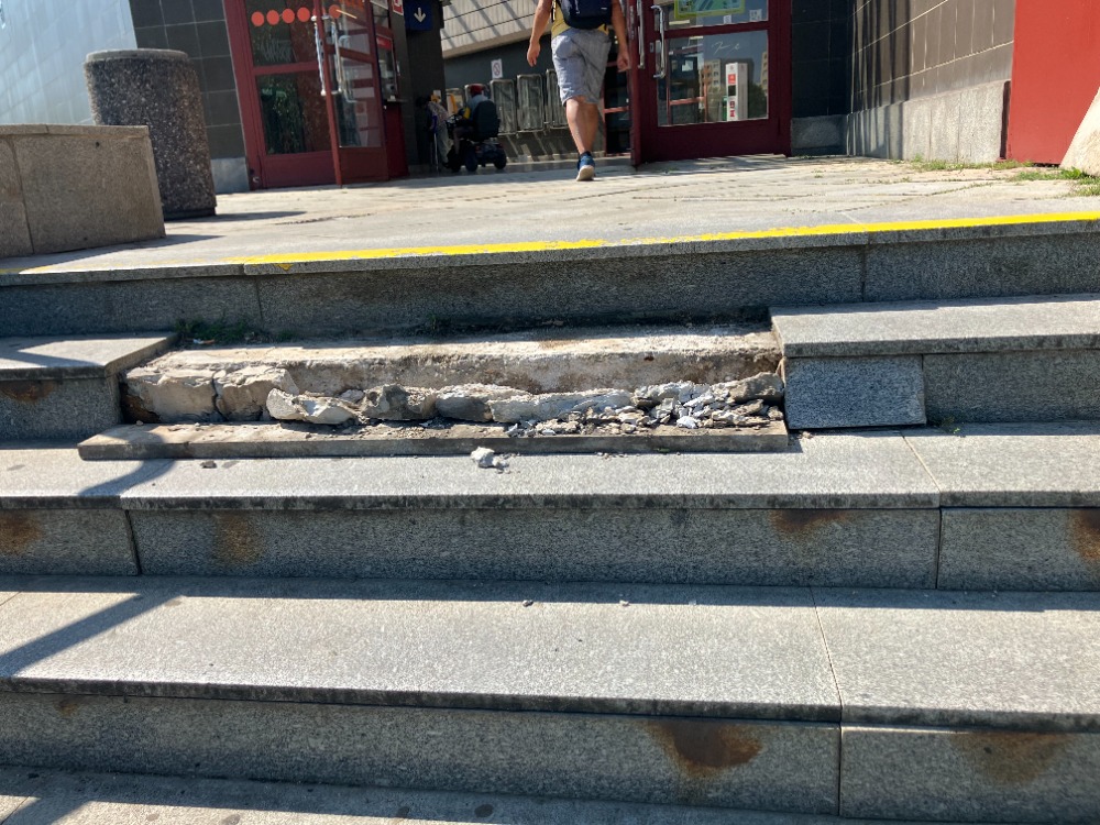 Dobrý den, poškozený schod byl opraven. Děkujeme za upozornění.