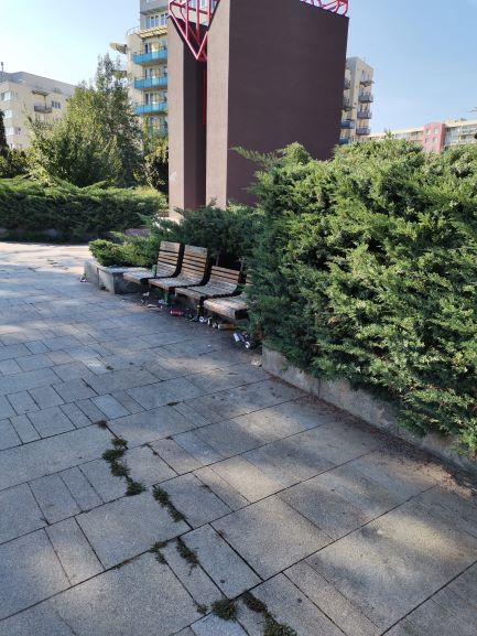 Posílám vám fotky laviček vedle metra Hůrka. 150 m od budovy úřadu Praha 13.