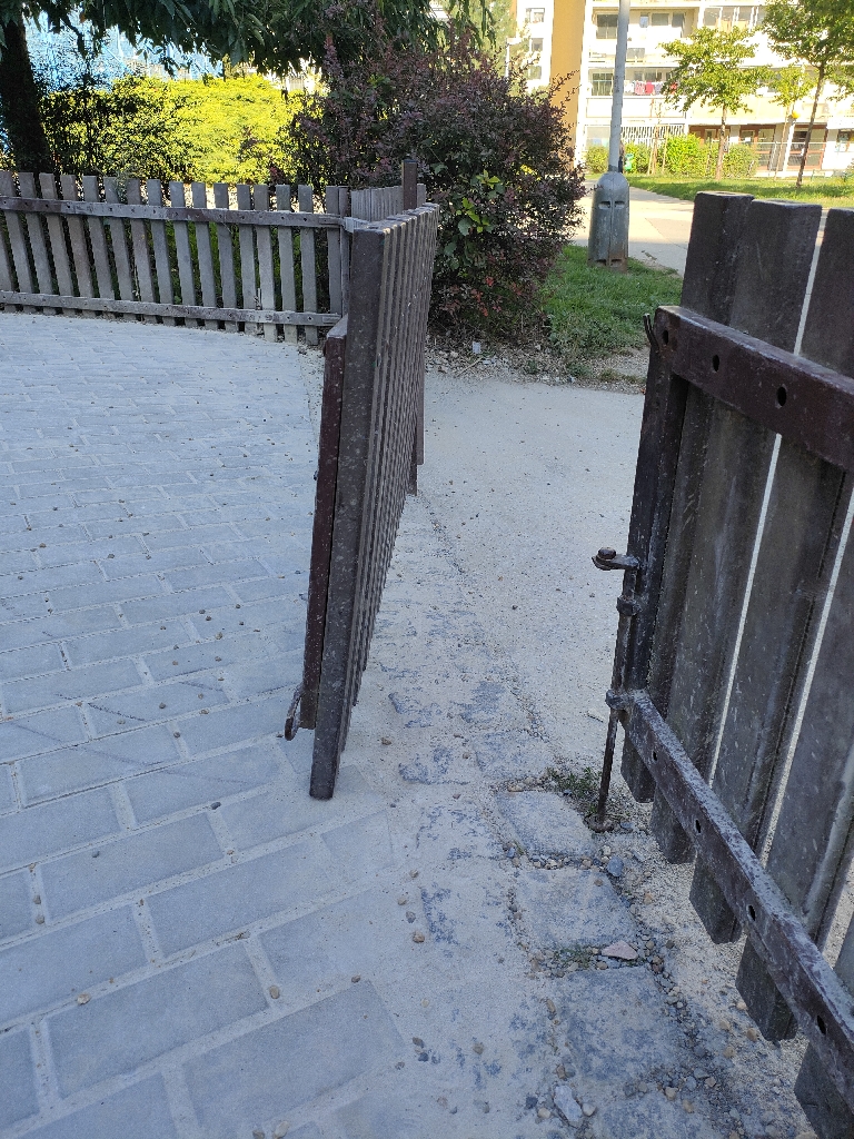 Na hřišti položili novou zámkovou dlažbu tak, že nešlo bez použití velké fyzické síly otevírat vrátka. Vrátka jsou už kvůli tomu napůl zničená a velmi špatně se s nimi manipuluje. Prosím o opravu.