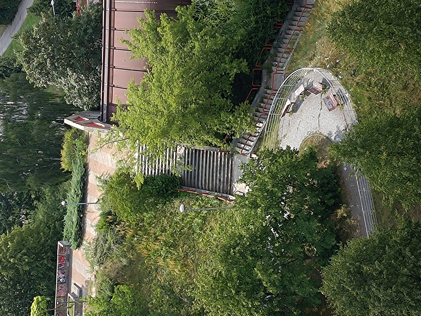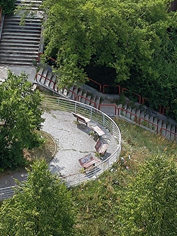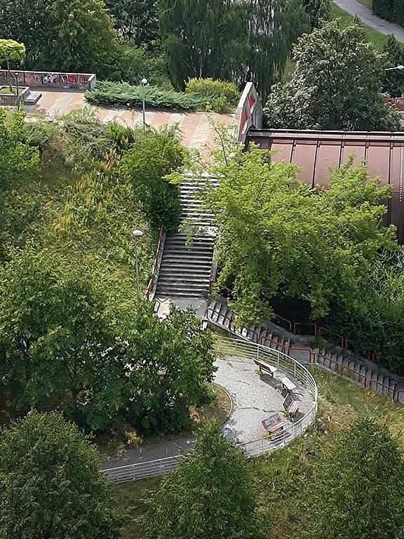 Kolem čtyř laviček u začátku tubusu metra ze strany stanice Hůrka, naproti domu Volutová 2524/12 se hromadí velké množství odpadku.