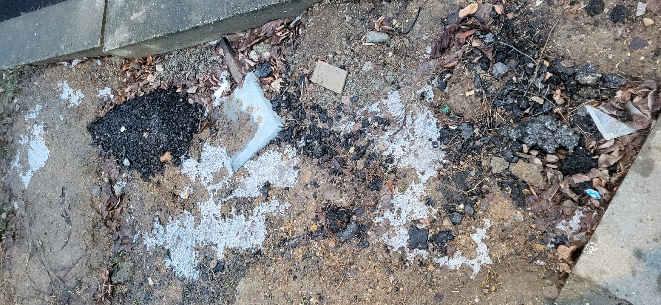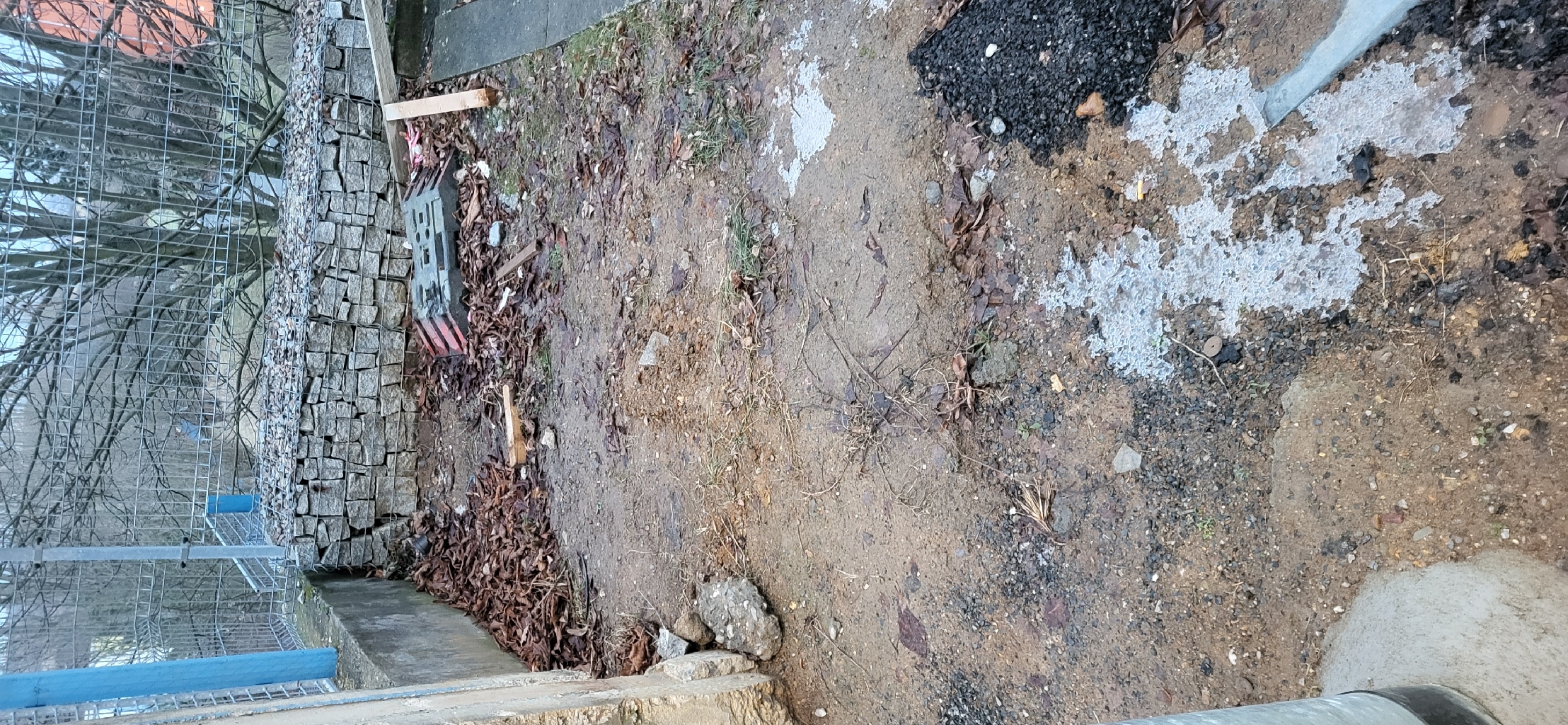 Nepořádek – viz obrázek, nedokončená úprava pozemku po rekonstrukci přilehlého parkoviště. Chtělo by to uklidit a na jaře zasadit trávu.