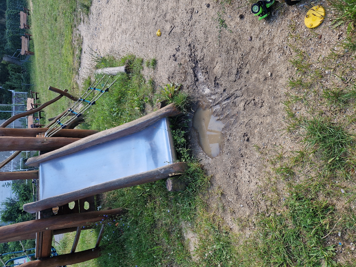 prosím o zasipani díry pod skluzavkou pískem. děkuji