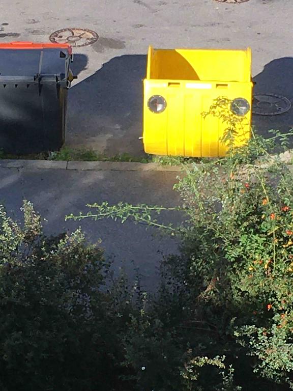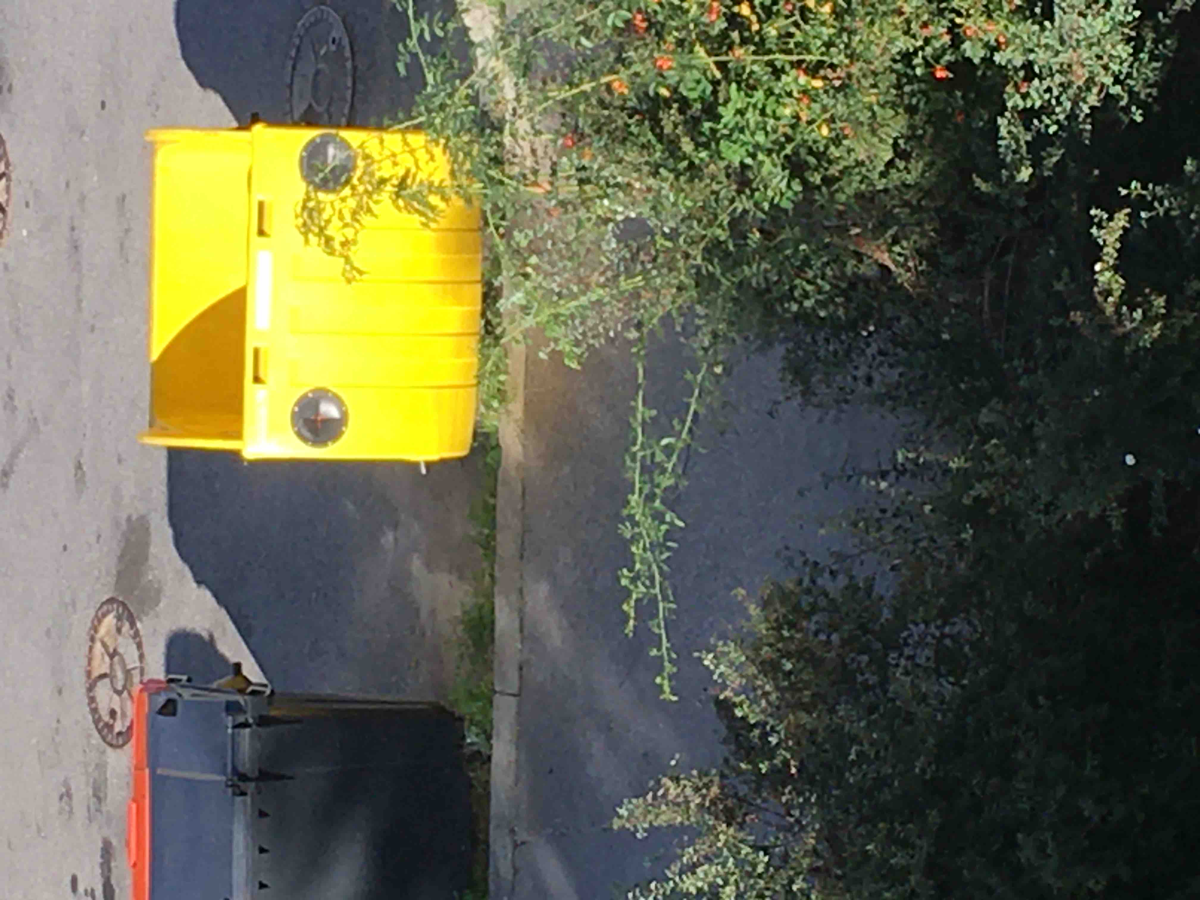 Naplno otevřený žlutý kontejner, nejde zavřít
