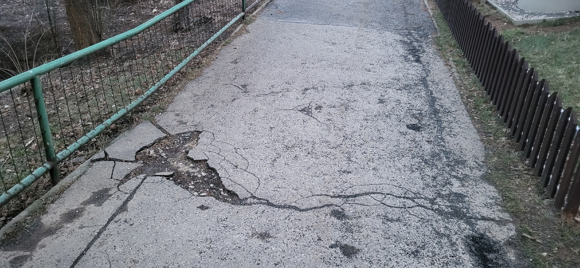 Dobrý den, děkujeme za upozornění na výtluk v chodníku. Chodník je ve správě Odboru životního prostředí a bude zařazen do plánu oprav pěších komunikací, ale jeho oprava bude provedena až po dokončení další etapy výměny veřejného osvětlení. Děkujeme za podnět, OŽP