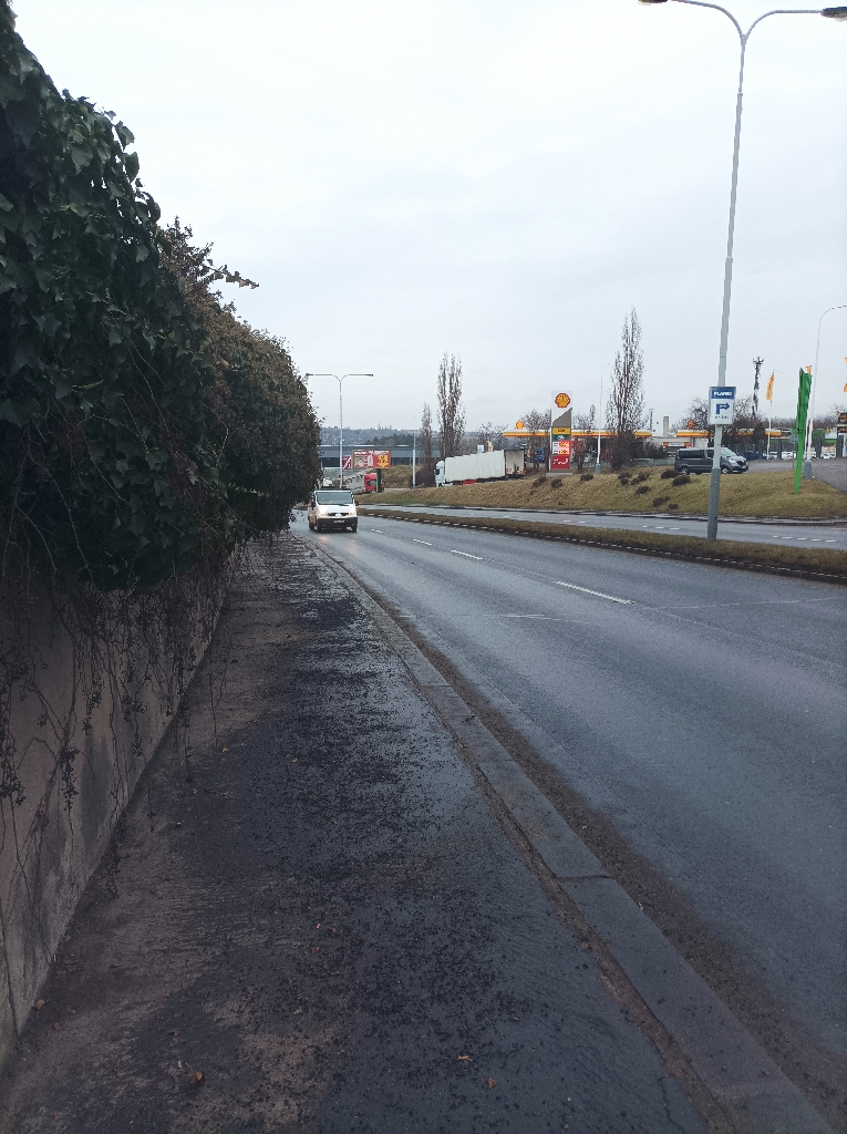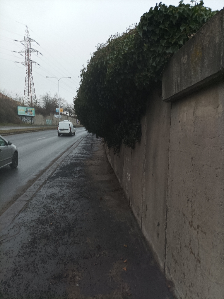 Po chodníku nelze projít, aniž by člověk nemusel skoro vstoupit do dvouproudé silnice,kde jezdí auta povolenou rychlostí 70 km/h.