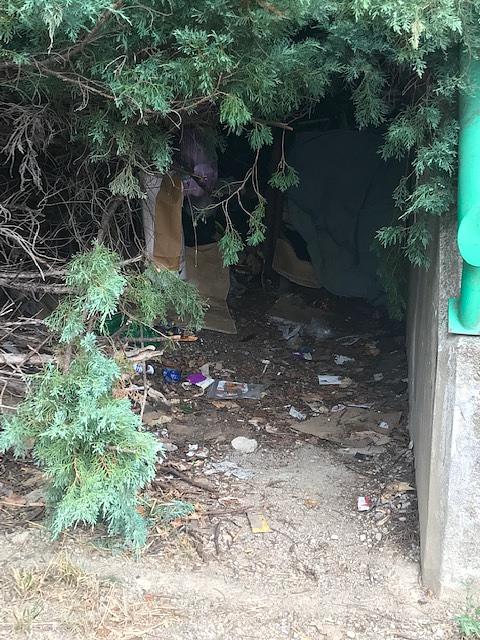 posílám foto nějakého doupěte u lampy veřejného osvětlení č. 509065, Mukařovského ul. Visí tam tašky s odpadky a jídlem na větvích, běhají tam desítky krys cik cak přes chodník, možná se tam chodí i na záchod, a to těsně vedle chodníku, kudy se chodí na metro. Podařilo by se zlikvidovat? Předem děkuji.