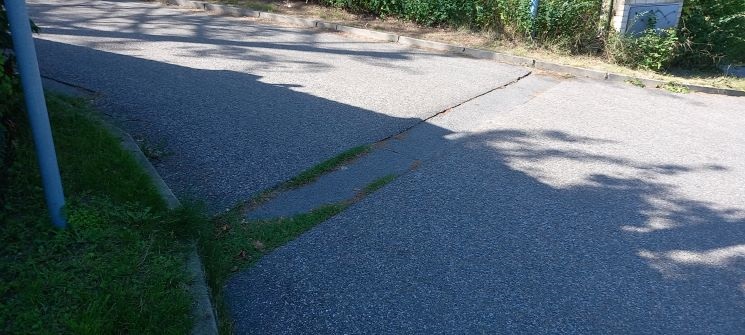 Při výjezdu z ulice Ke Studánce je propadlá vozovka. Jedná se o rýhu po výkopu na elektrický kabel, který tu prováděly Elektrické závody cca před 30 lety. M.V.