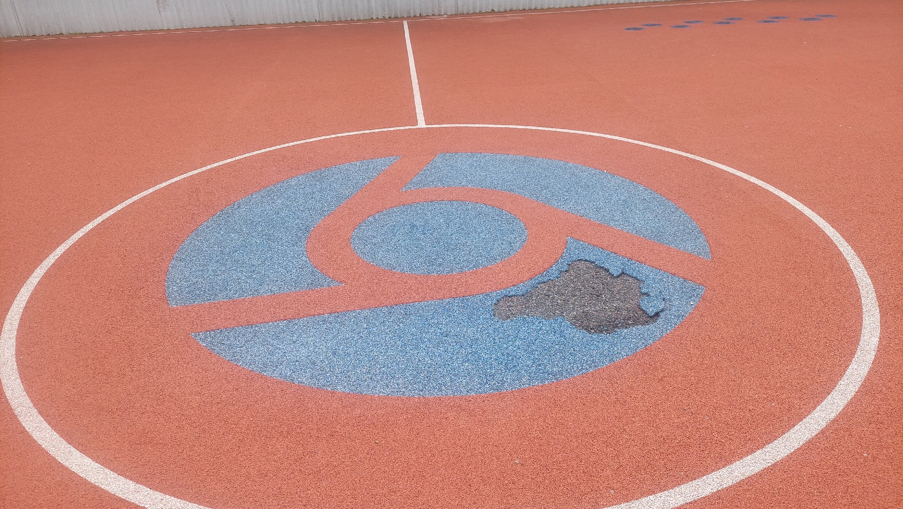 Dobrý den, poškozený pryžový povrch bude opraven správcovskou firmou. Děkujeme Vám za podnět, OŽP.