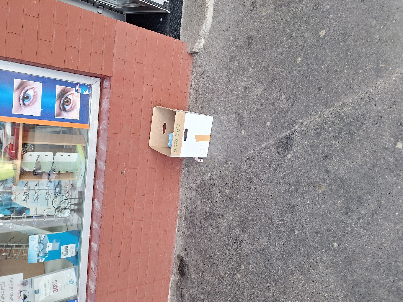 Není prosím možné dodat oficiální odpadkový koš na dočasnou zastávku BUS Luka? Někdo improvizoval a dal sem tyto papírové. děkuji