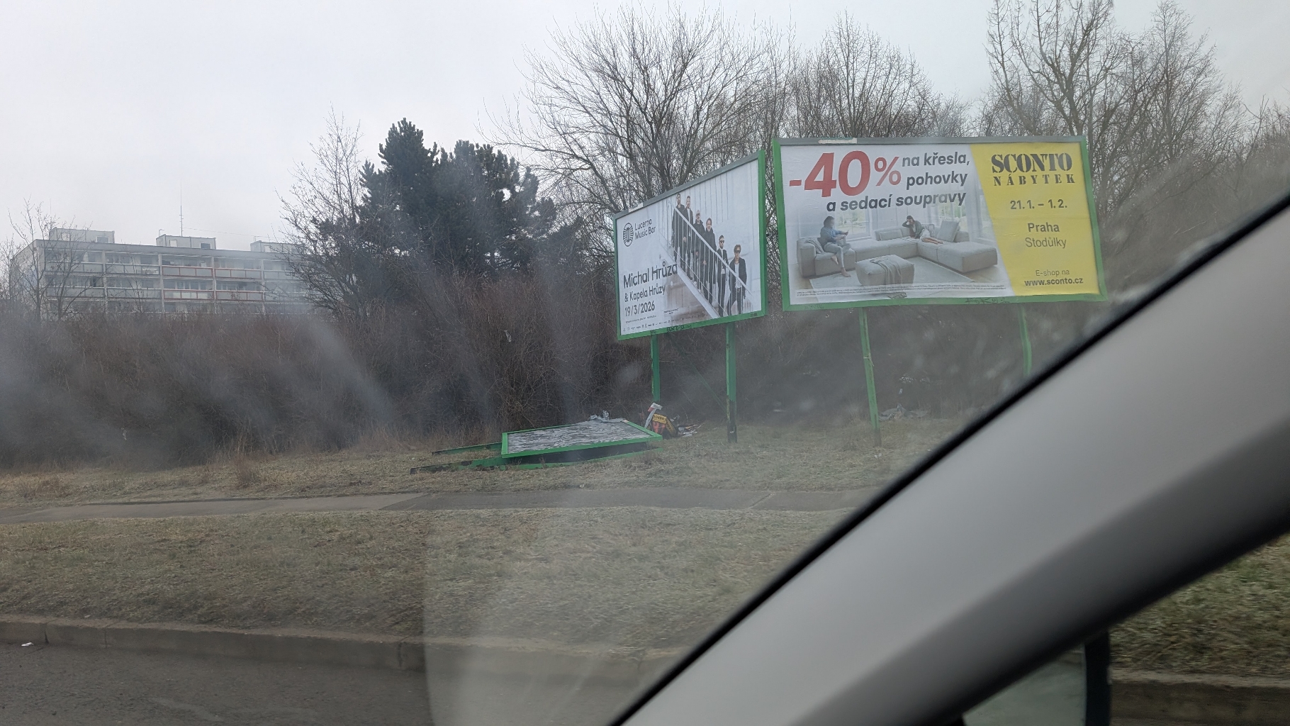 prosím o odstranění spadlého billboardu, a dalších které mohou spadnout.jeden z nich už spadl viz foto. tyto billboardy navíc nemají povolení.