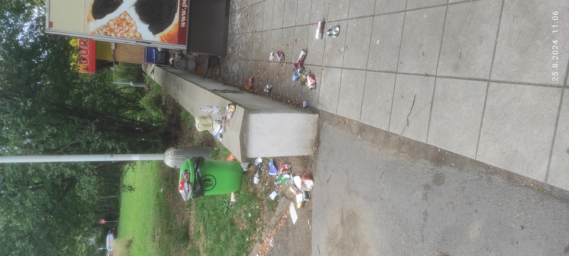 Odpadkový koš byl vyvezen, nepořádek uklizen. O víkendu se koš nevyváží.