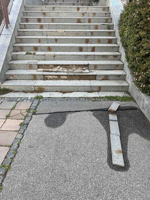 Vylámaný podschodnice a nášlapy se propadají a obrací
