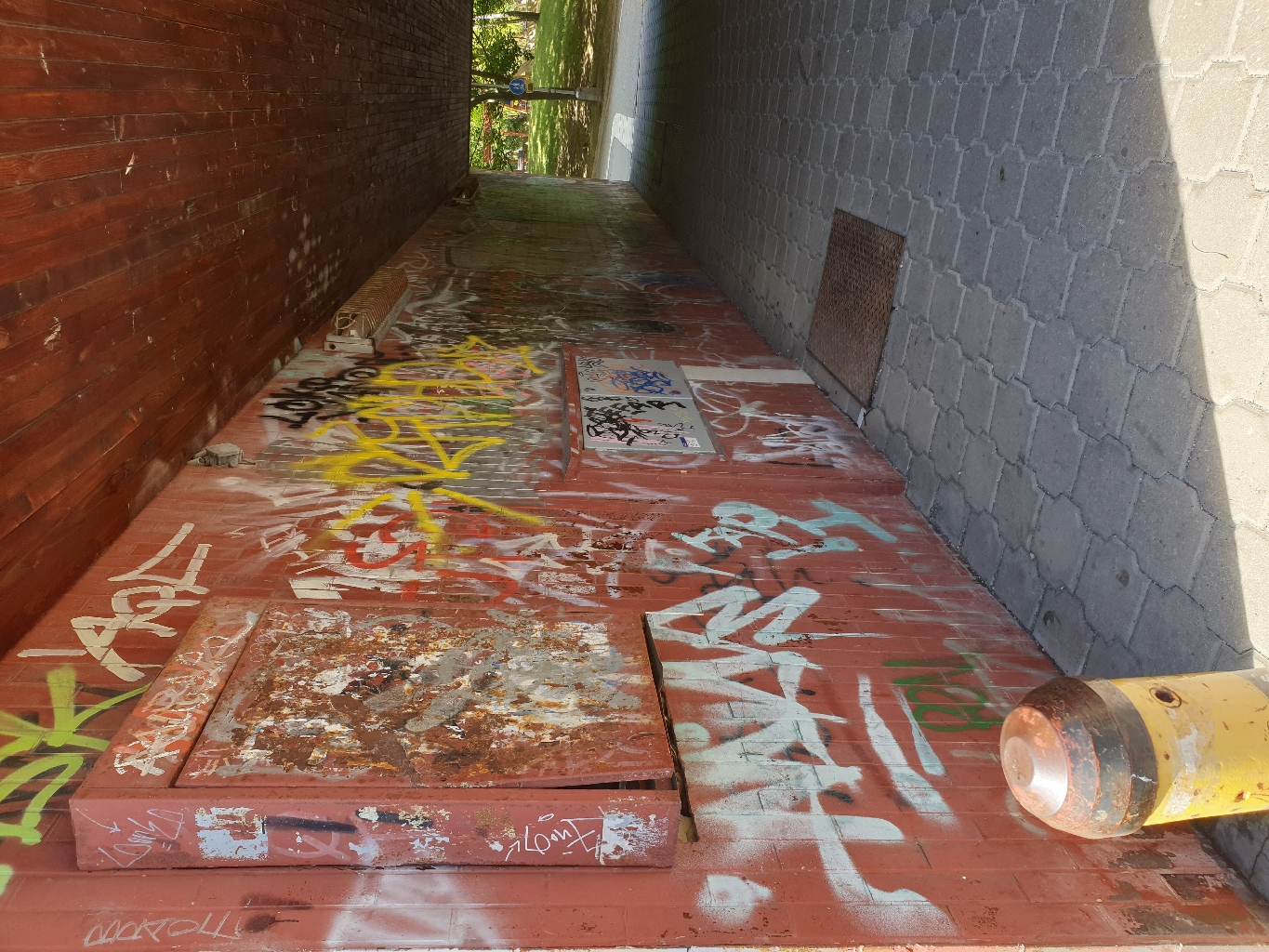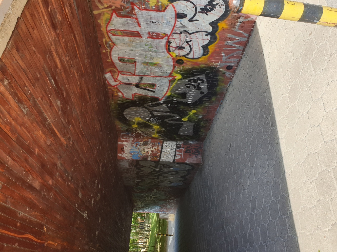 Podchod, kterym se obyvatele pohybuji smerem od OC Luziny (2.patro, smer skola) do svych domovu. Adresa: Brdickova 11