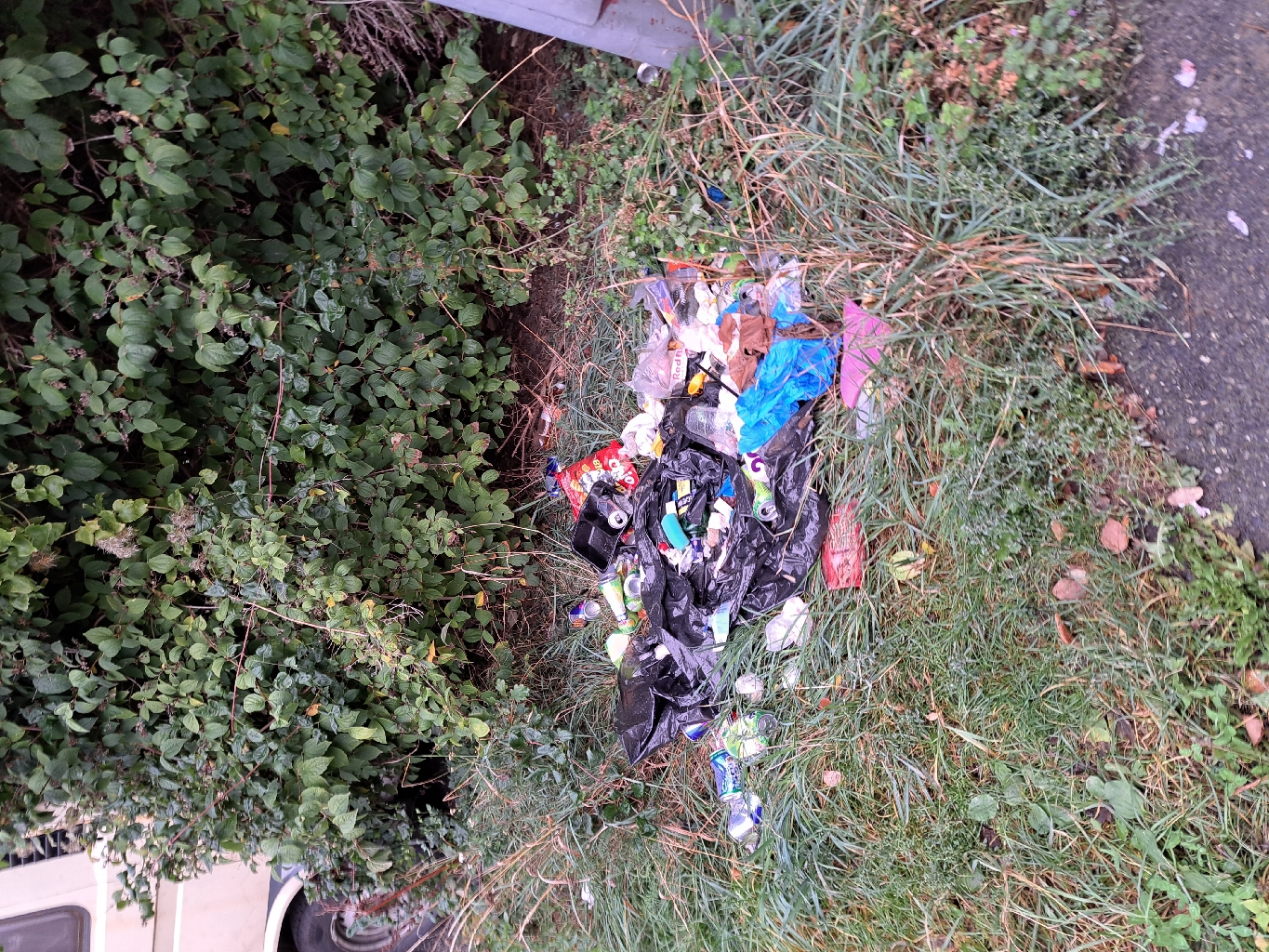odpad v keřích na soukromém pozemku č. 2131/650, k. ú. Stodůlky u tržiště Rondo u lampy č. 508452
