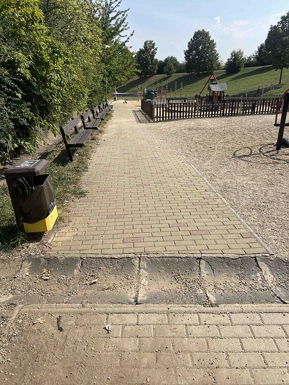 Uprava cesty/pridani jednoduchych koleji pro hladky prujezd pro lidi s kocarky/na voziku