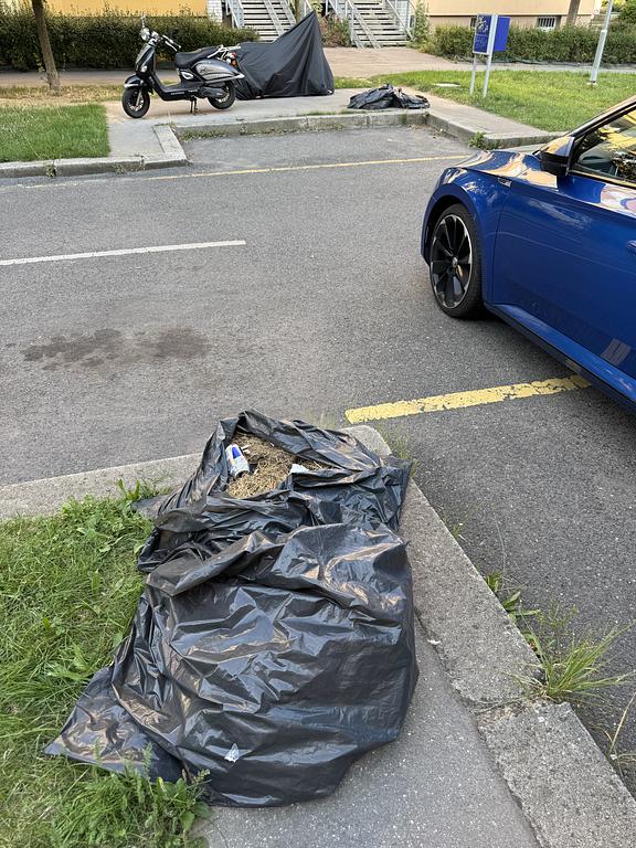 Uz cca 3 tydny se na obou stranach ulice, vali pytle s pokosenou travou, ktere tu zapomneli po poslednim koseni. Prosim o odstraneni. Ulice Prusikova 13 (poloha v aplikaci nejde upravit)