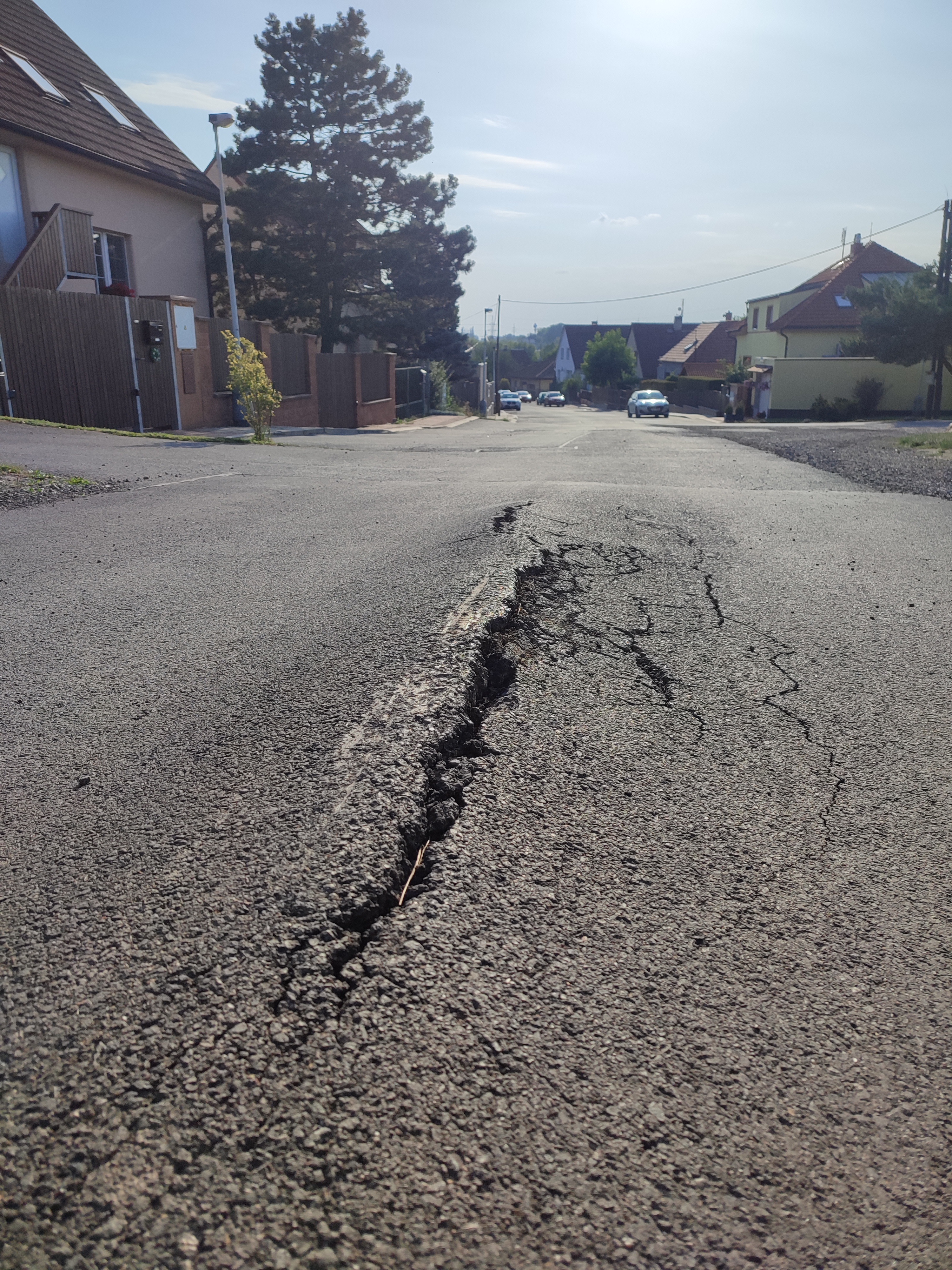 Dobrý den. Chci nahlásit poničenou vozovku. Ulice K Náplavce 87 Praha 13. Propadlá a hrozí poničení vozidel. Problém jsem už hlásil letos na jaře. Vozovka se rychle zhoršuje jelikož se navýšila intenzita průjezdu vozidel – hlavně nákladních při stavbě nové hasičárny. Předem děkuji za vyřešení problémů. Z pozdravem Ch.