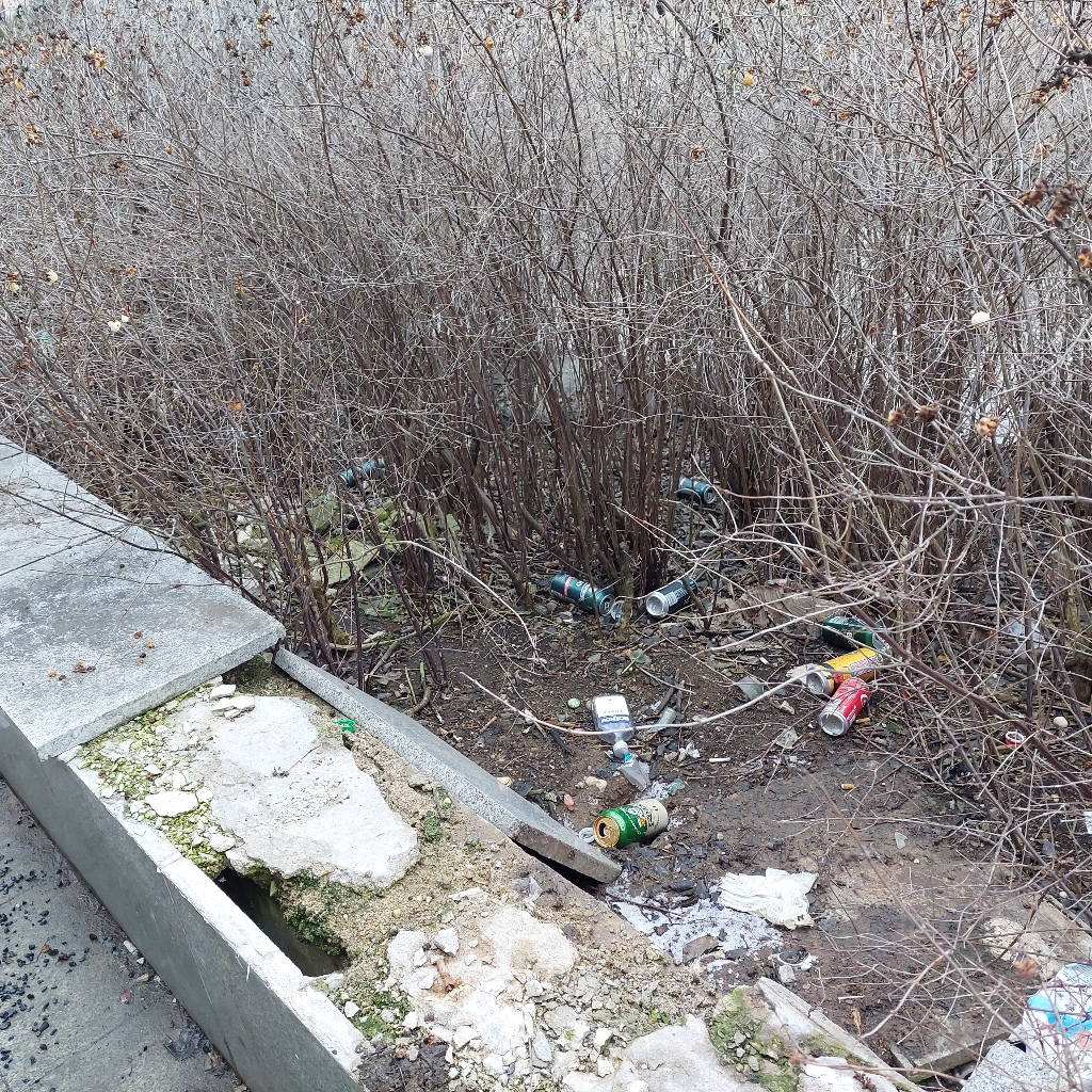 Neustálý nepořádek v zeleni u stanice metra Hůrka a poškozený obklad.