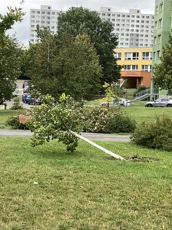Dobrý den, vyvrácená lípa byla během pondělí ošetřena a znovu ukotvena. Vzhledem k charakteru taxonu je možnost, že přežije. Pokud by se tak nestalo, bude nahrazena. Děkujeme za podnět, OŽP .