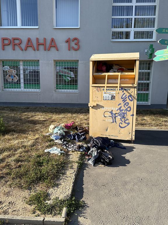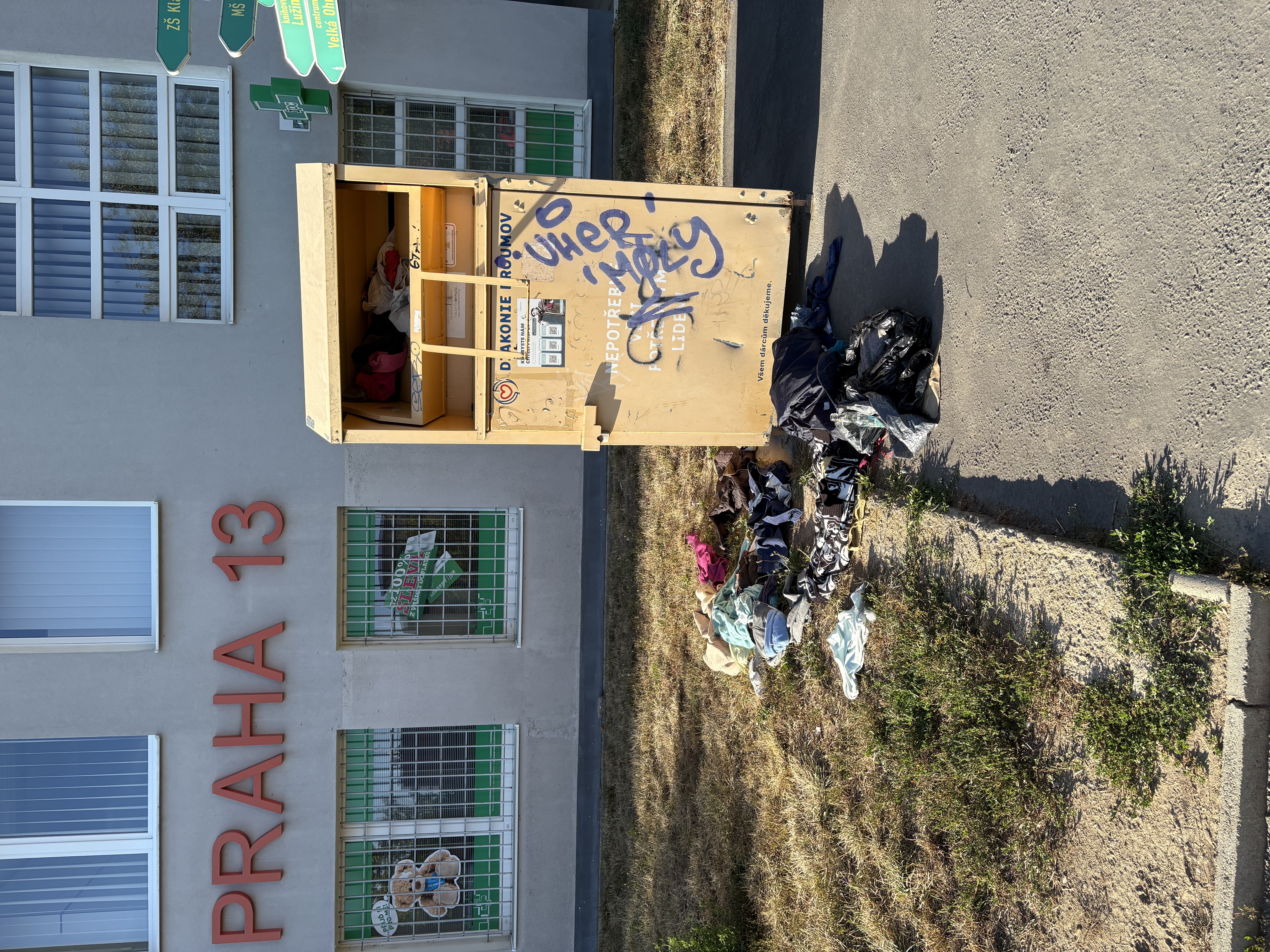 Prosím o úklid u popelnic, který je zde už od začátku prázdnin