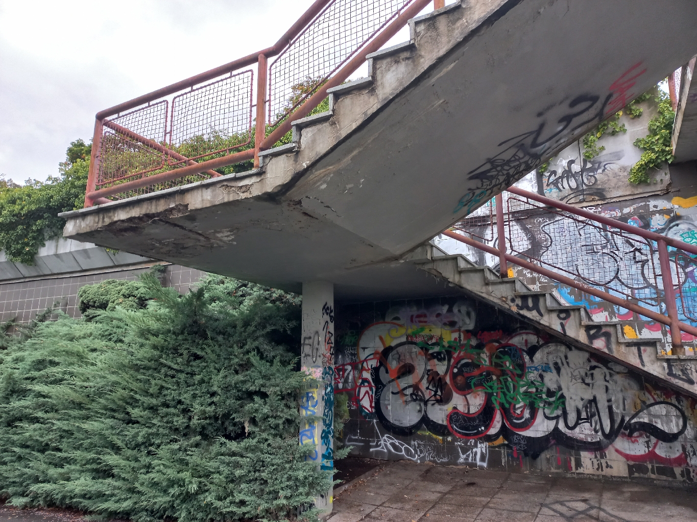 Stav schodiště už začíná ohrožovat osoby pod ním procházející.