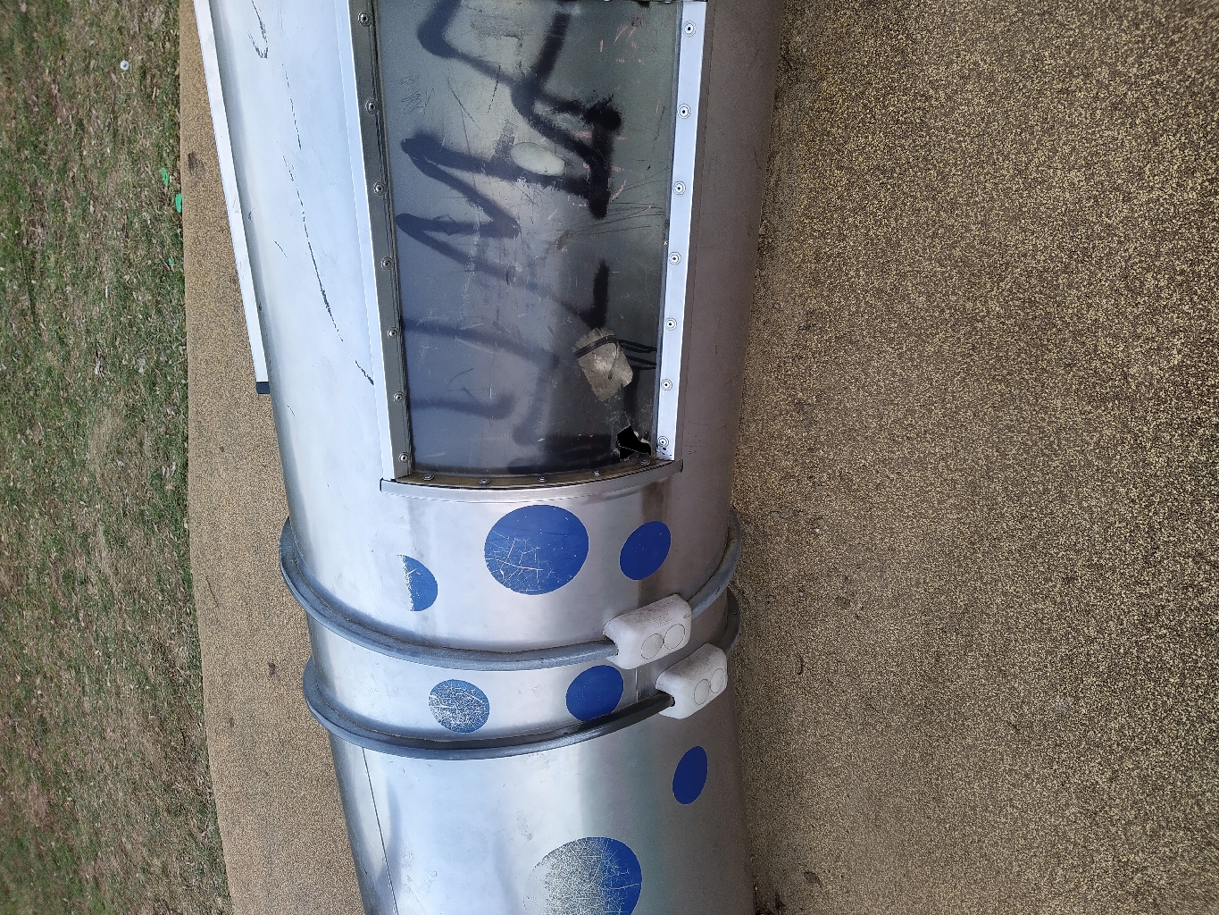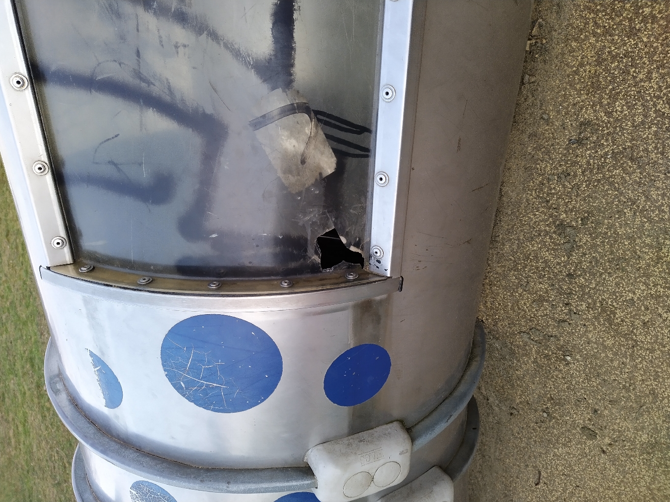 V okénku na tubusové klouzačce na hřišti za MŠ Mohylová je vypadly kus plastu a zbytek má poměrně ostré okraje o které by se mohly děti zranit.