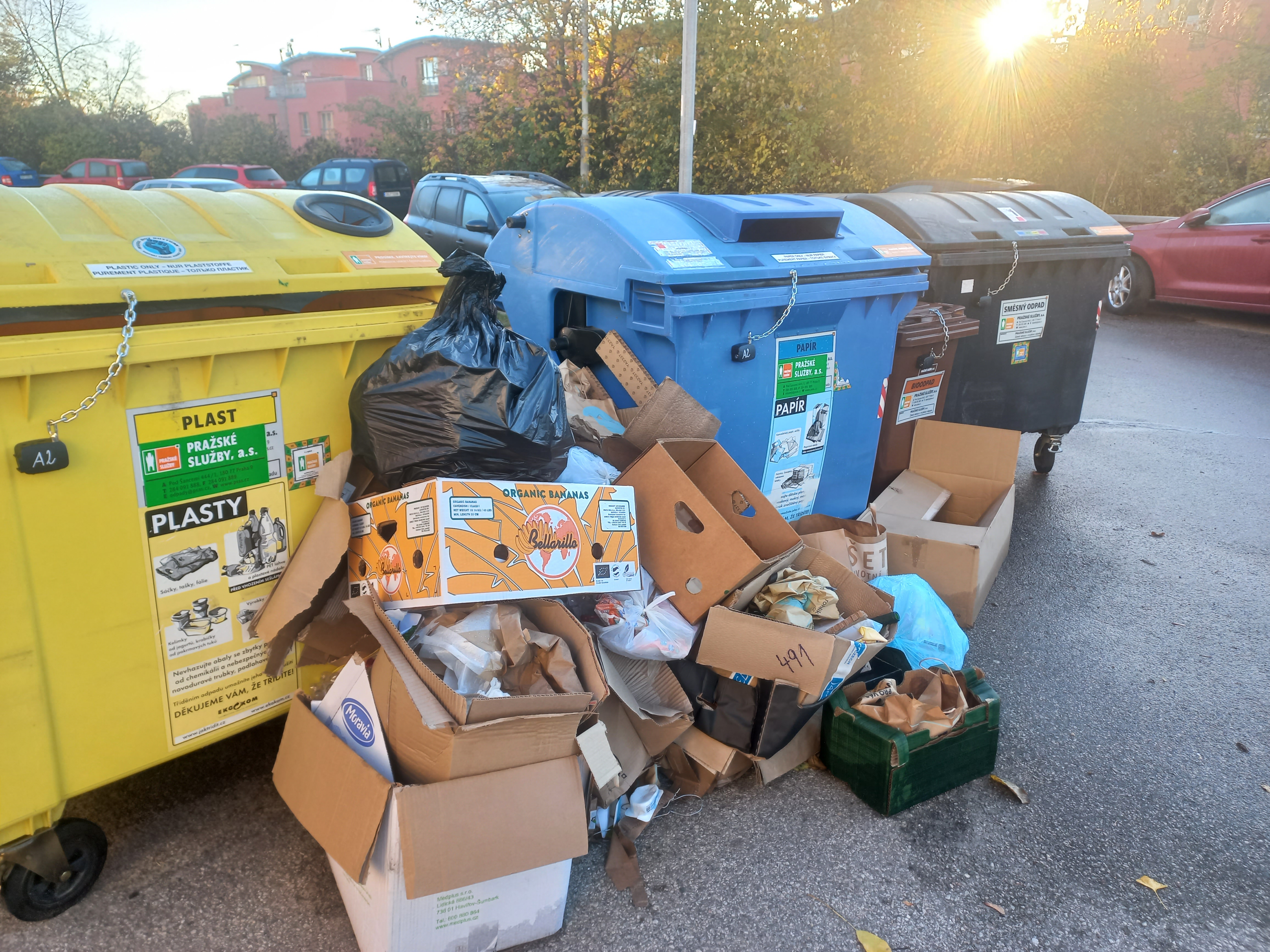 Co mě ovšem překvapuje mnohem víc, jsou zámky u kontejnerů, které se tam objevily – měla jsem za to, že ty si dávají jen majitelé kontejnerů na směsný odpad? Proč jsou uzamčeny i kontejnery na tříděný odpad? Obávám se, že tím se trvalý nepořádek kolem ještě zhorší.