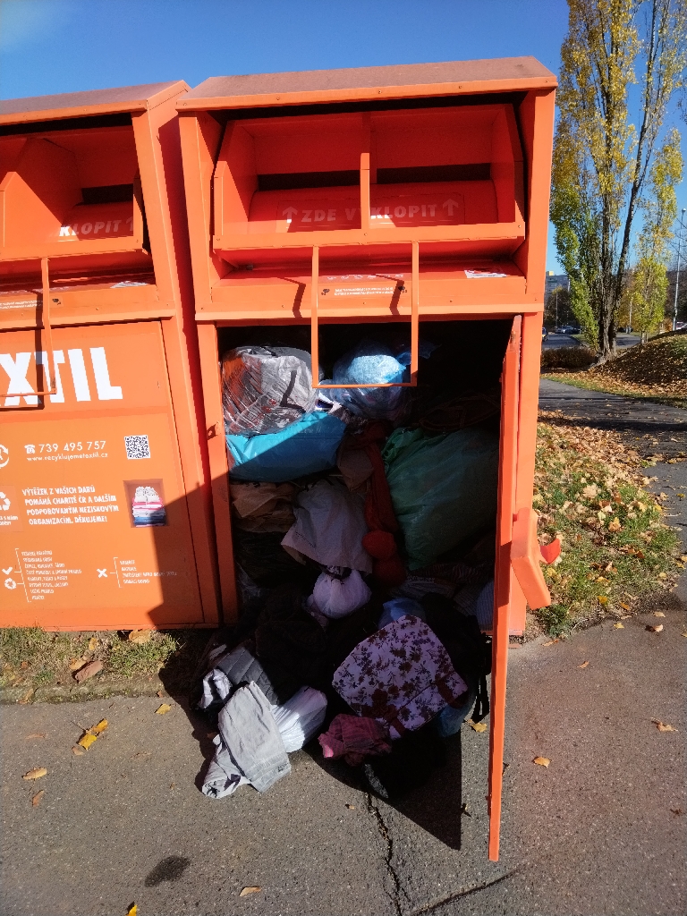 Dobrý den, Vámi nahlášena závada byla postoupena vlastníku kontejneru, t.j. společnosti Potex k zajištění nápravy. Děkujeme za upozornění. Tým MMS – hlášení problémů