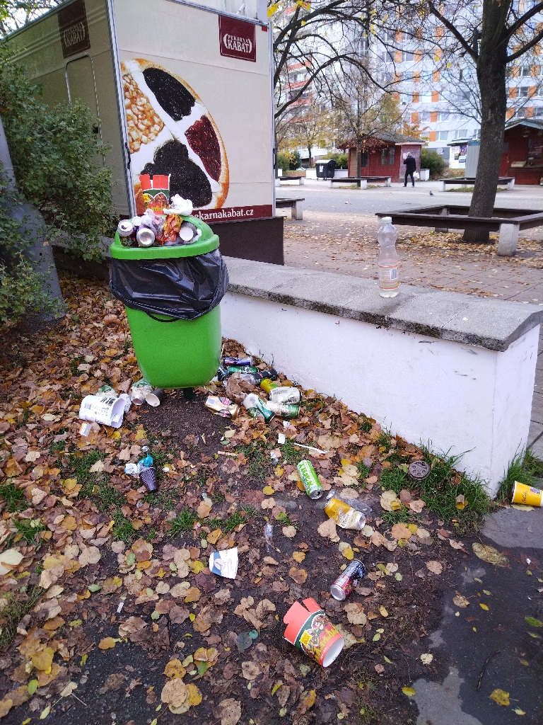 Dobrý den, při místním šetření dne 13.11.2023 bylo zjištěno, že koš je vyvezen a nepořádek uklizen.