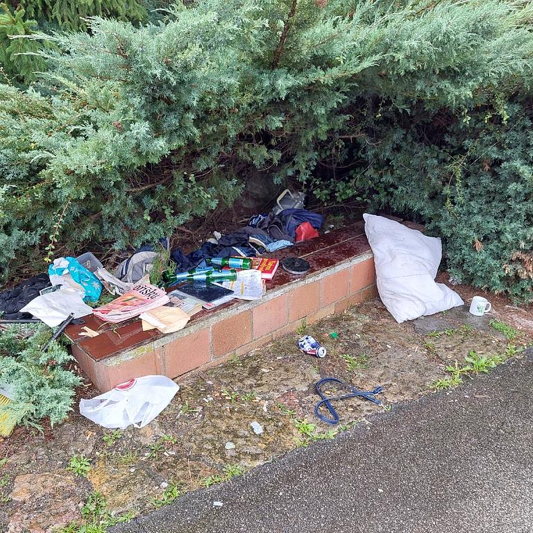 V prostoru s lavičkou pod zelení je pravděpodobně hnízdo bezdomovců.Je zde nepořádek a spousta natahaných věcí.Přímo proti radnici přes náměstí.Městská policie ze svých aut asi nedohlédne…