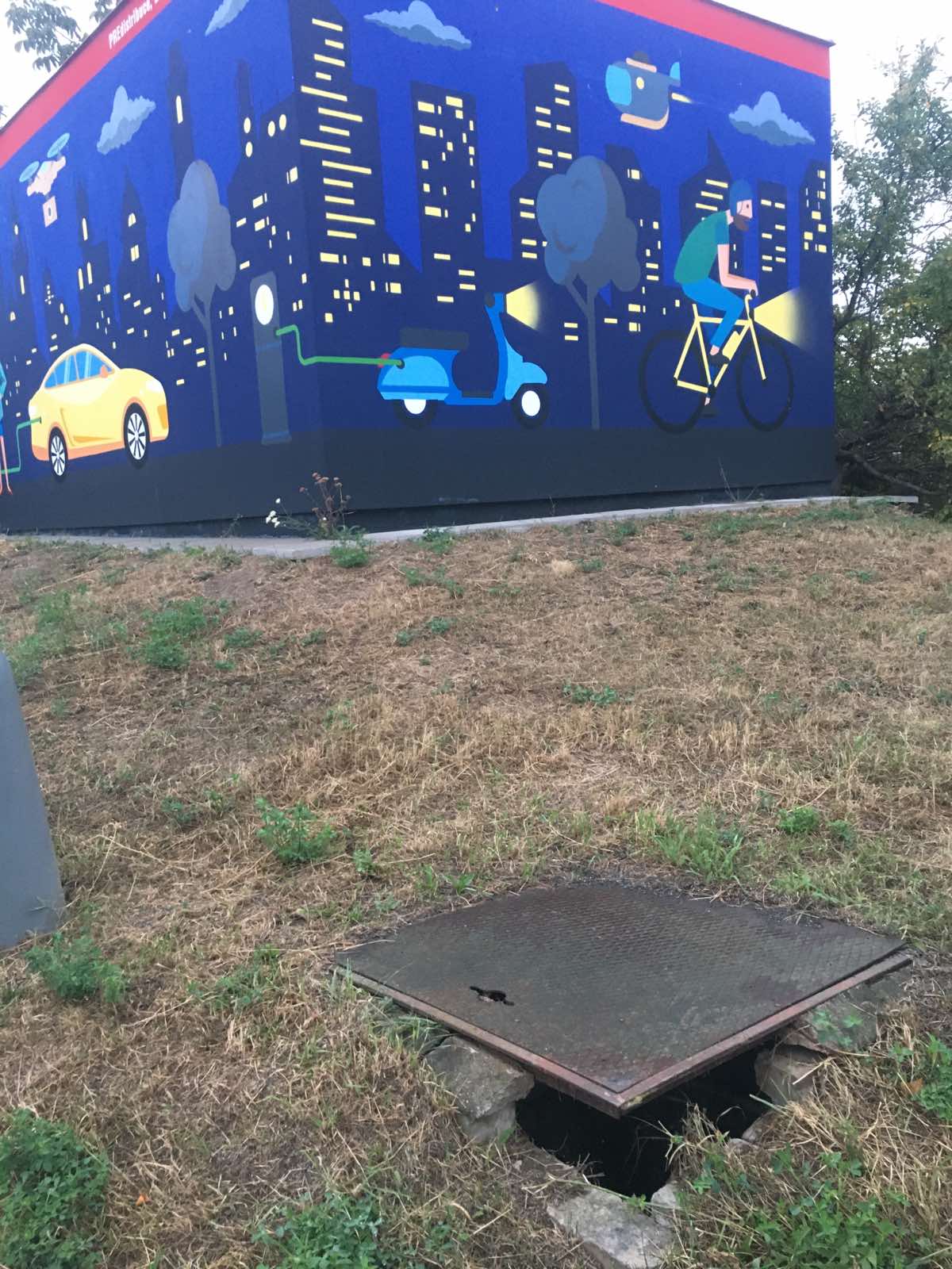upozorňuji na nebezpečný poklop a degradaci stěn šachty s možností úrazu či pádu u Mateřské školy a základní školy speciální Diakonie ČCE na adrese Vlachova 1502/20, 155 00 Praha Stodůlky.