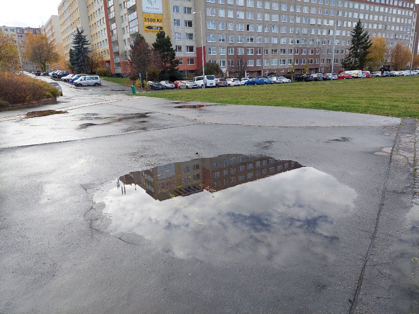 Na ploše Slunečného nám. je neodtékající kanál viz foto.